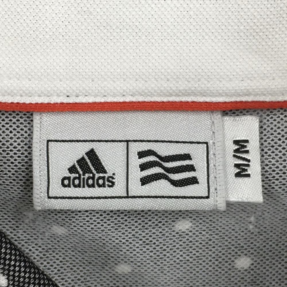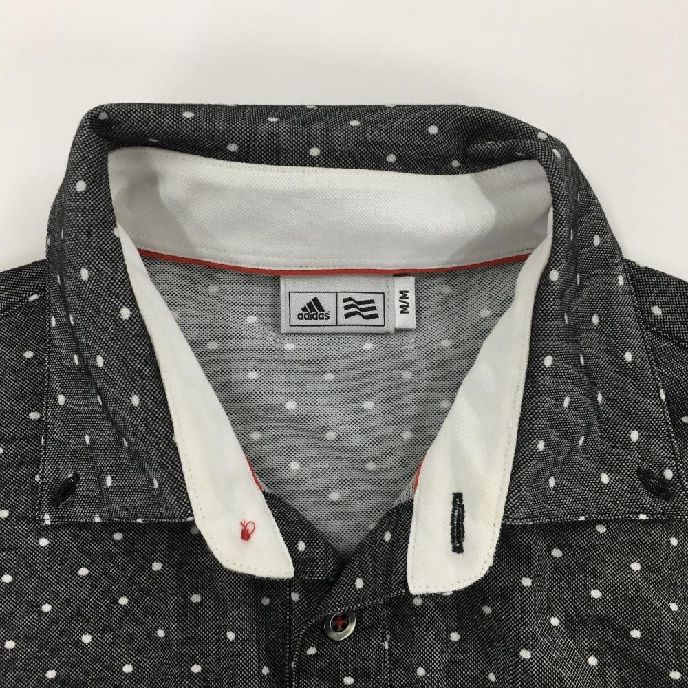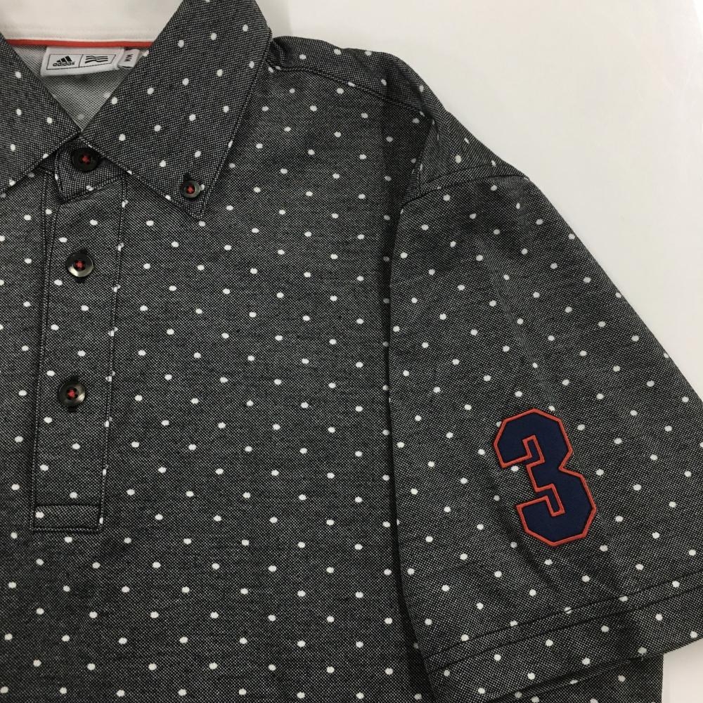 アディダス 半袖ポロシャツ ダークグレー×白 ドット柄 ロゴワッペン メンズ M/M ゴルフウェア adidas