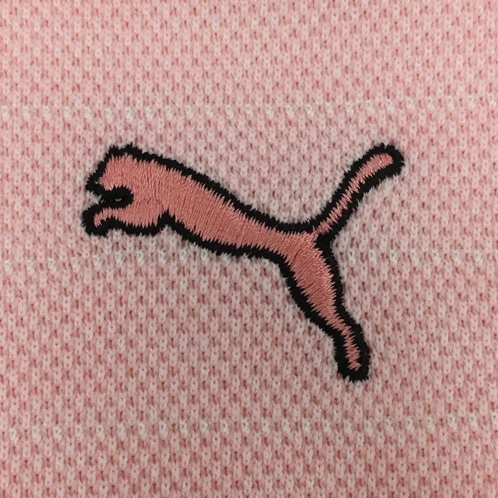 プーマ 半袖ポロシャツ ピンク×白 ボーダー調 ロゴ刺しゅう メンズ O ゴルフウェア PUMA