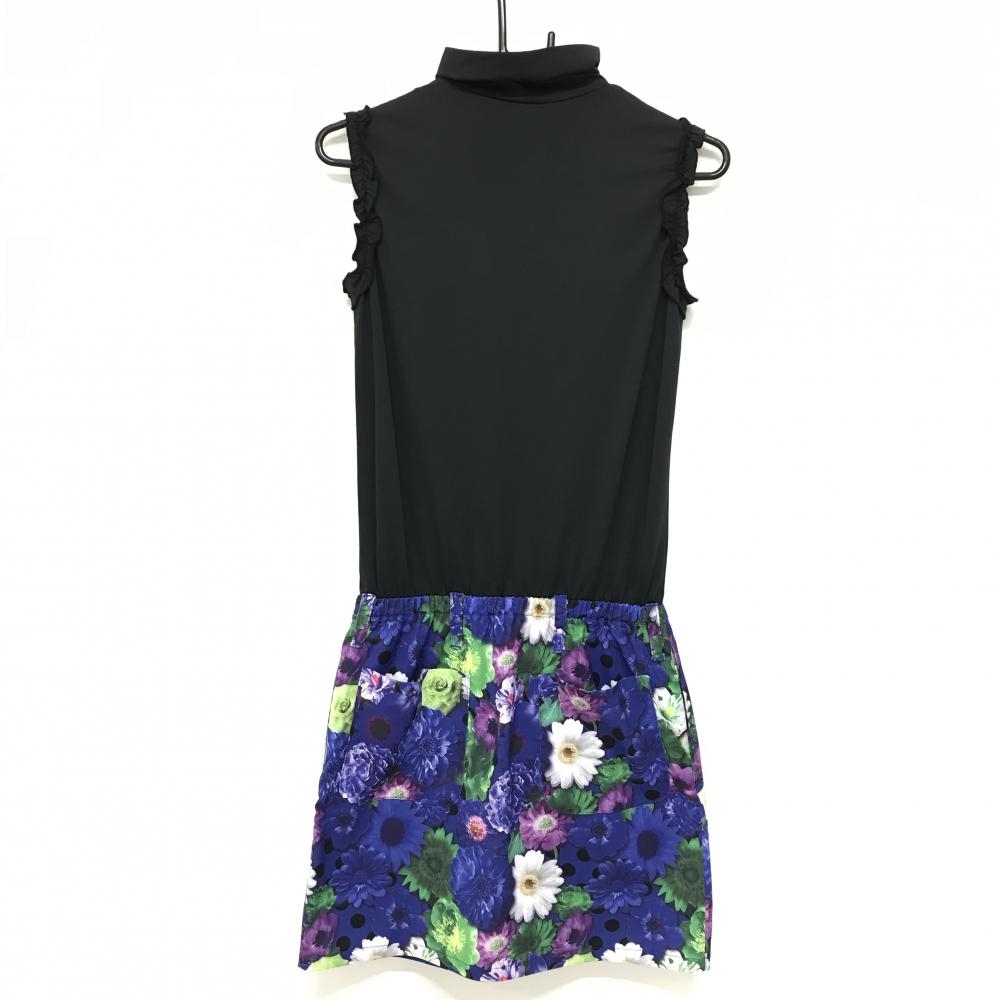 【超美品】ダンスウィズドラゴン ノースリーブハイネックワンピース 黒×ブルー レディース 2(M) ゴルフウェア Dance With Dragon