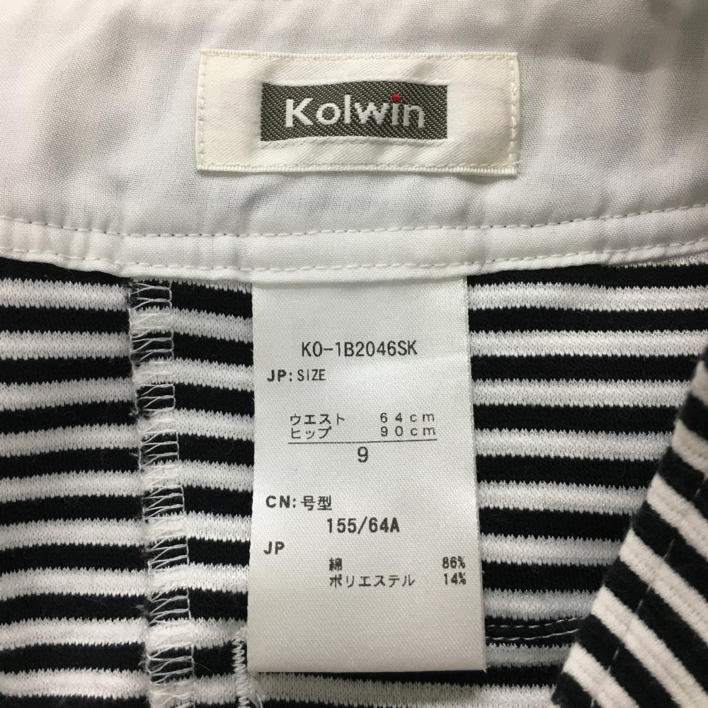 【美品】コルウィン スカート 黒×白 ボーダー バックロゴ ボックスプリーツ レディース M ゴルフウェア Kolwin