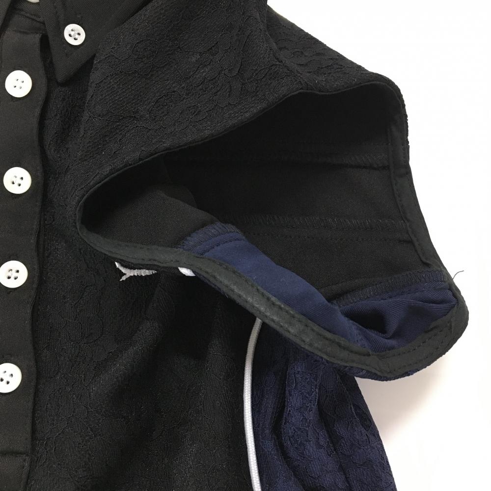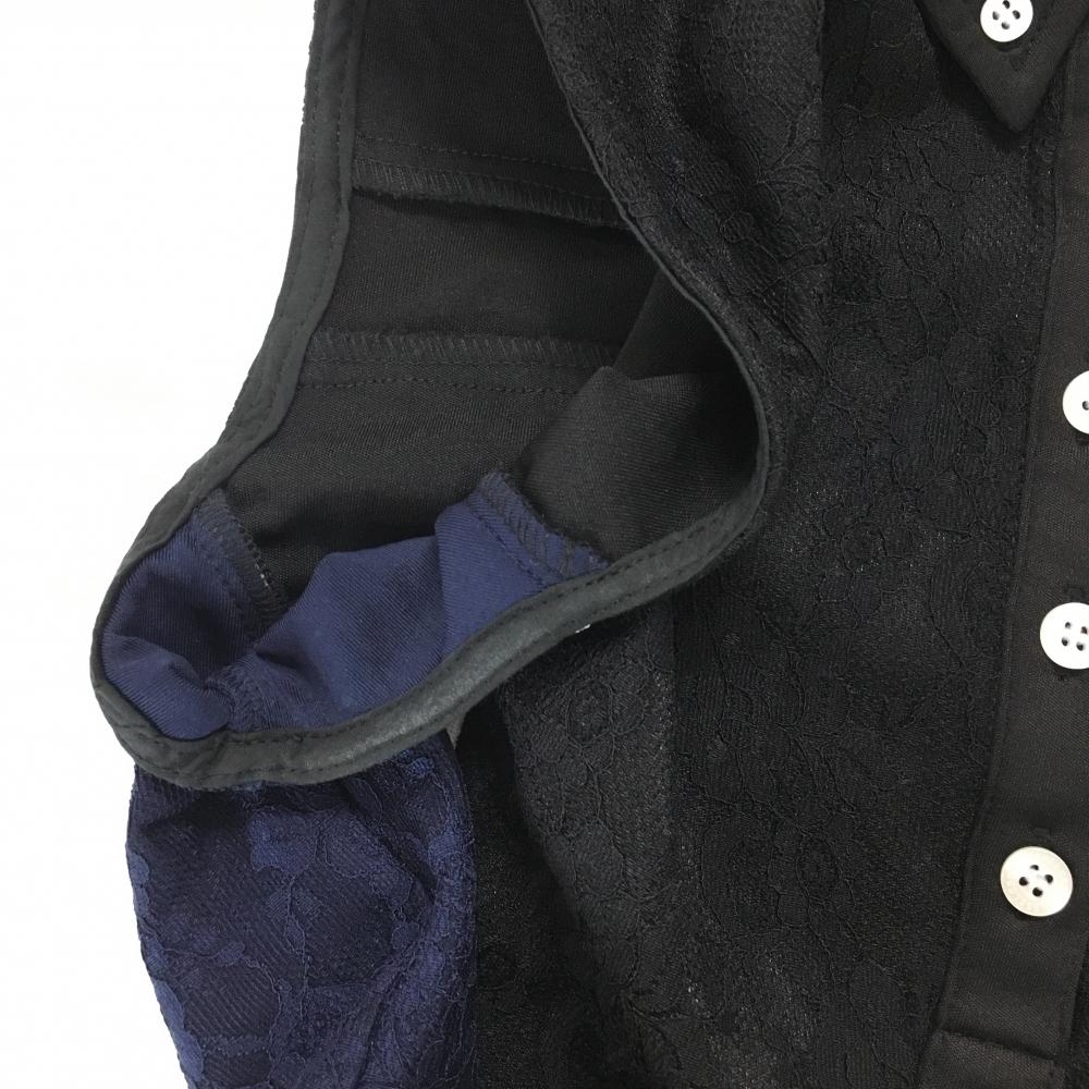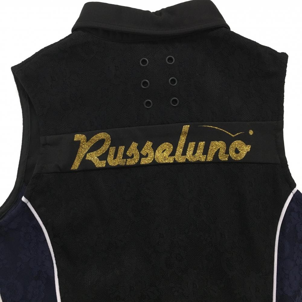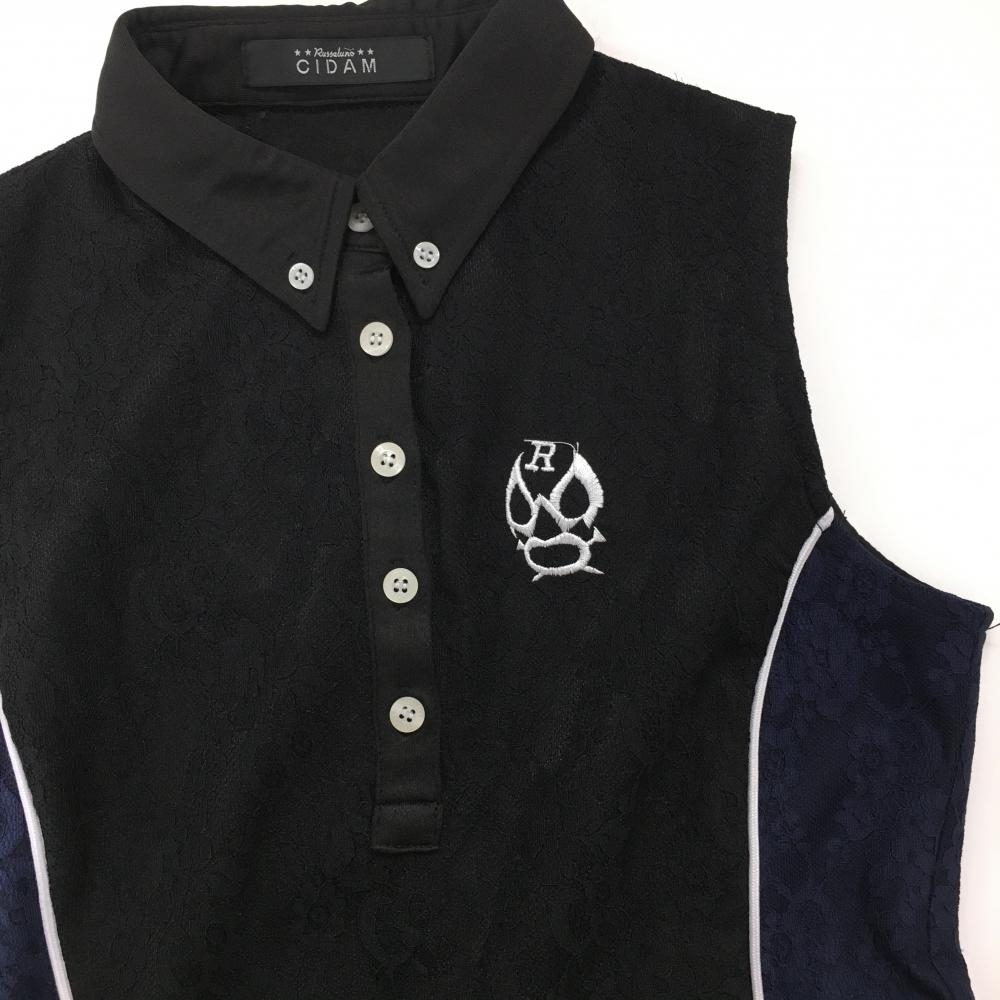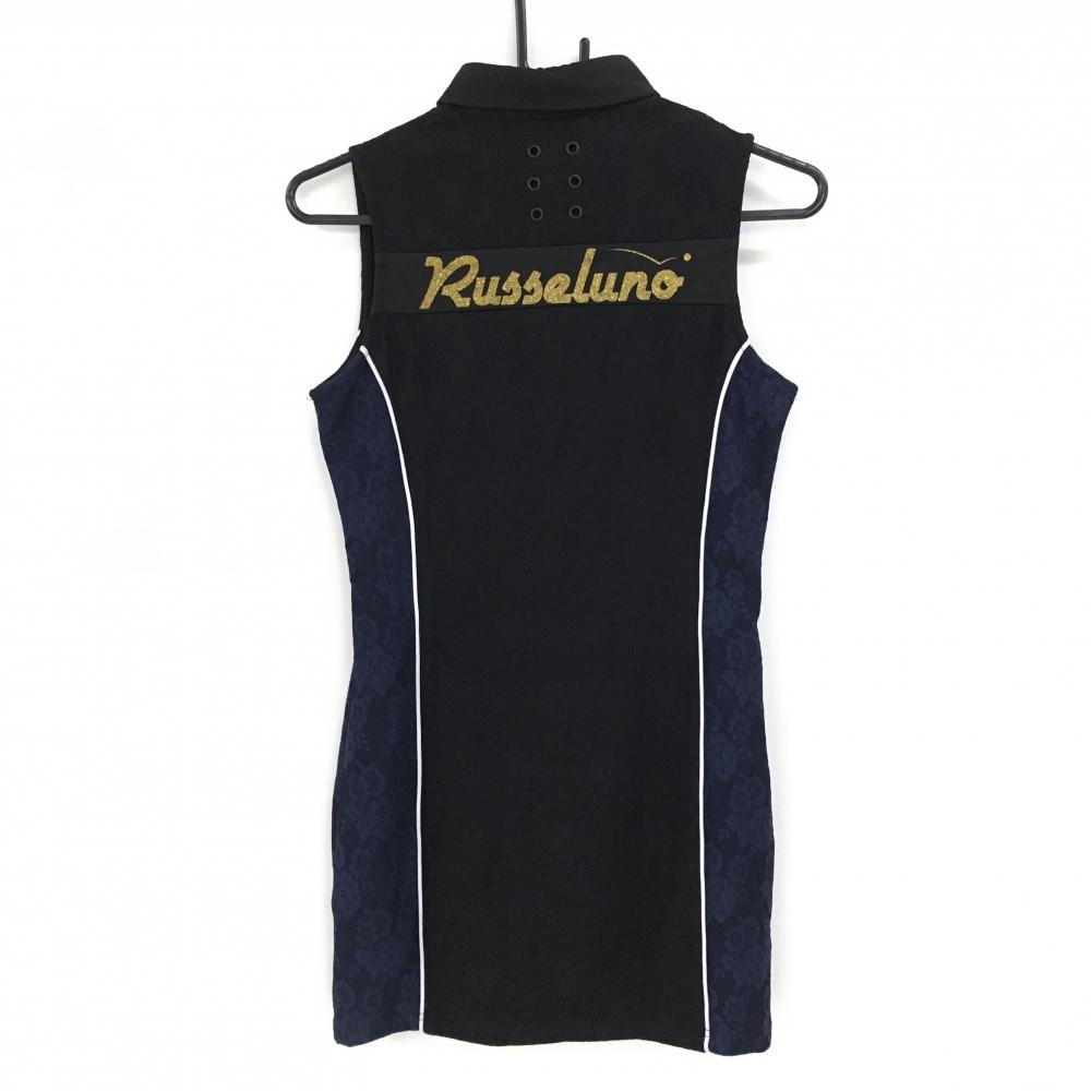 【美品】ラッセルノ ノースリーブポロワンピース 黒×ネイビー 表地レース ルチャ レディース 0(S) ゴルフウェア RUSSELUNO