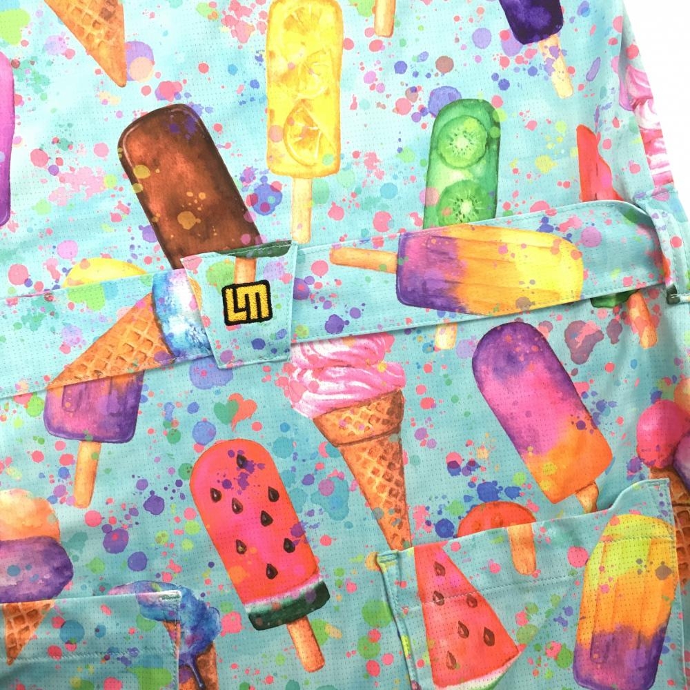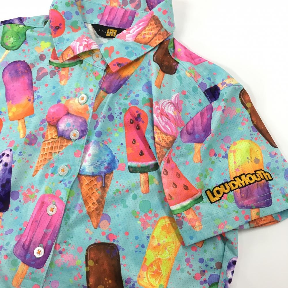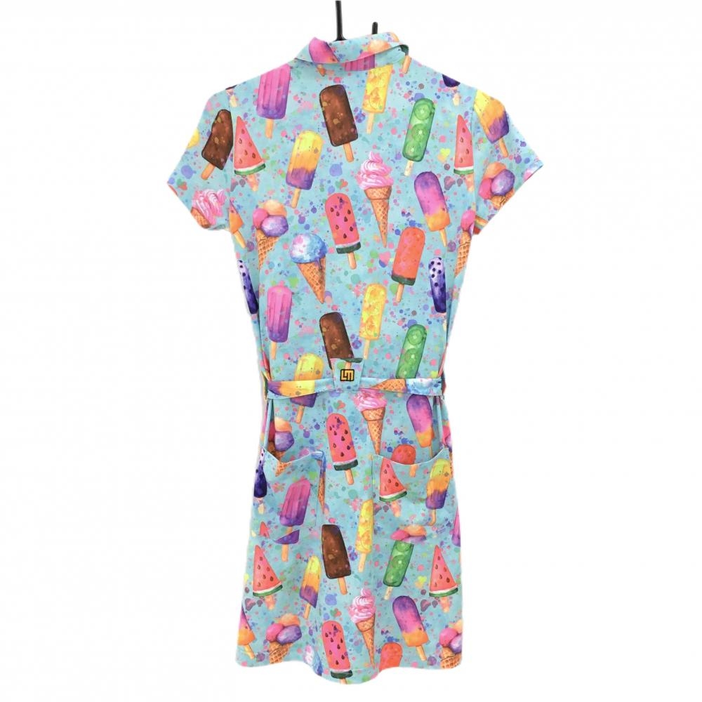 【超美品】ラウドマウス 半袖ポロワンピース ライトブルー×マルチカラー ハッピーアイスクリーム レディース S ゴルフウェア LOUDMOUTH