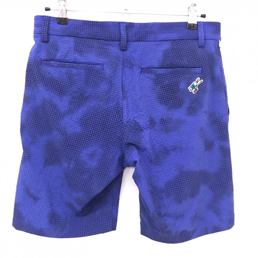 【超美品】アディダス ハーフパンツ ネイビー×黒 総柄 凸凹織生地 メンズ 82 ゴルフウェア adidas