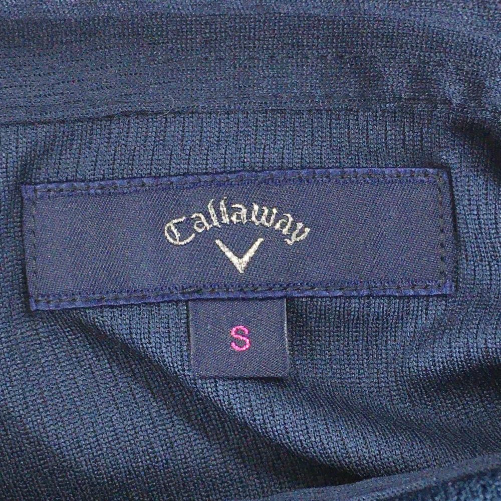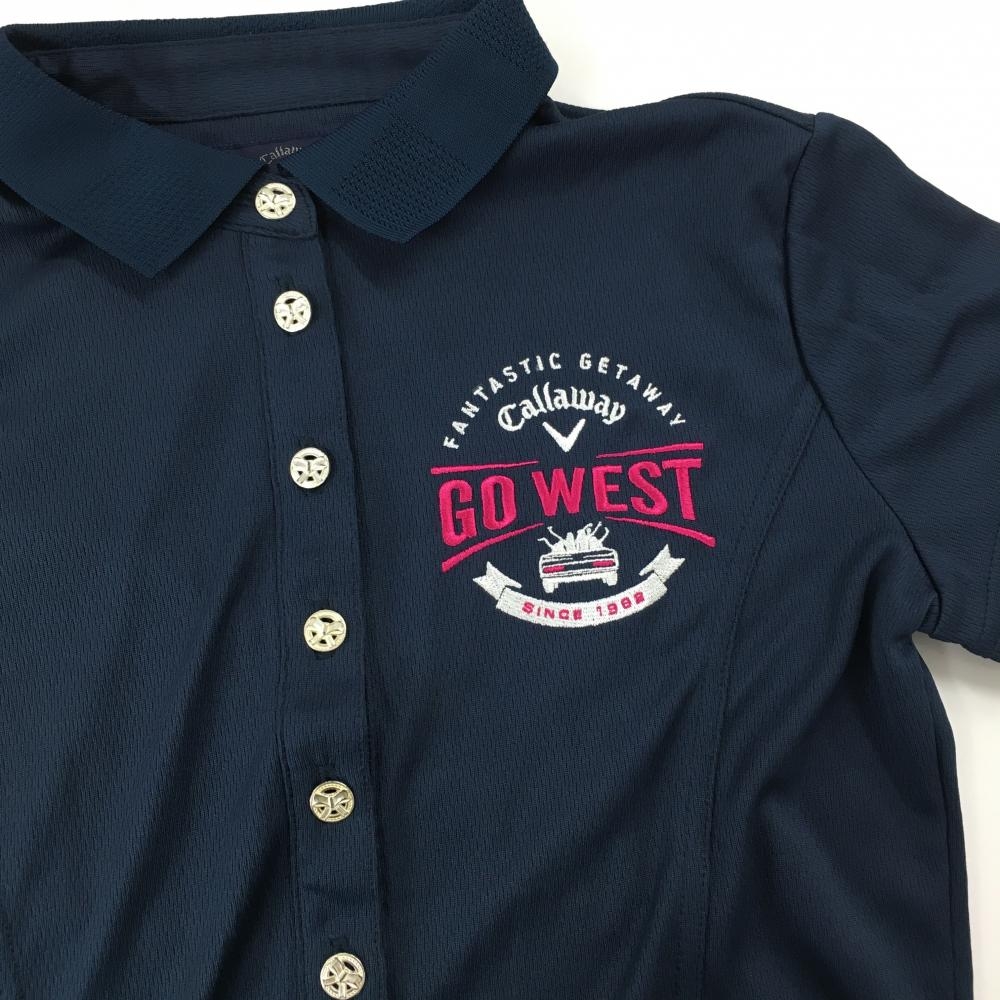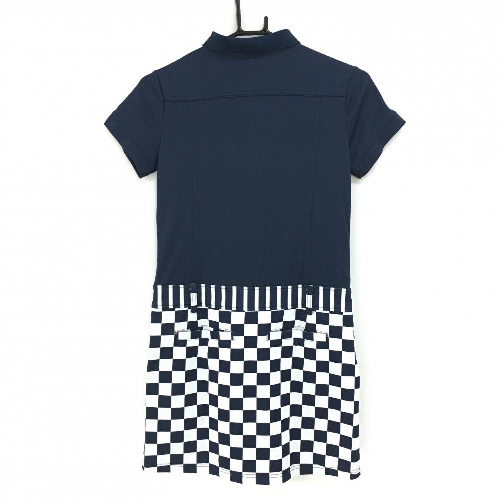 【超美品】キャロウェイ 半袖ポロワンピース ネイビー×白 スカート部ブロックチェック ロゴ刺しゅう レディース S ゴルフウェア Callaway