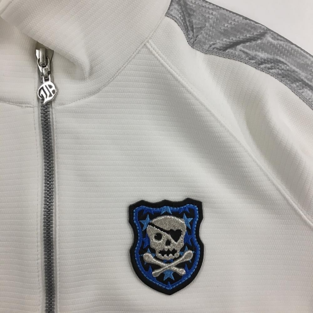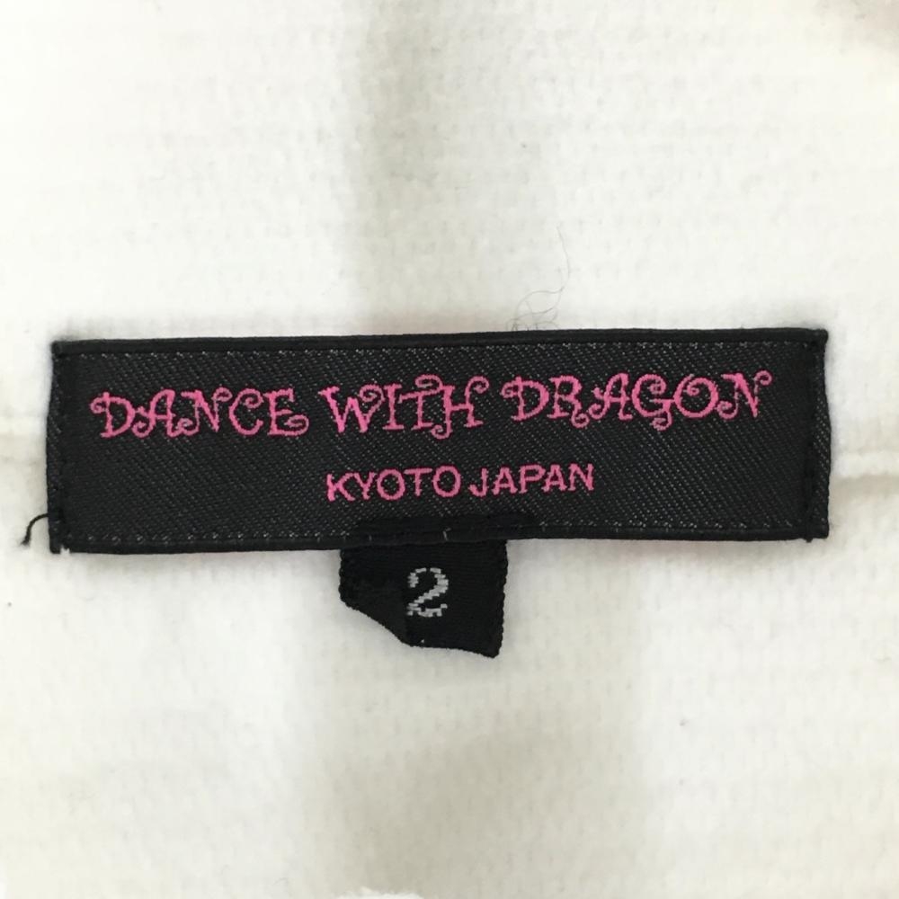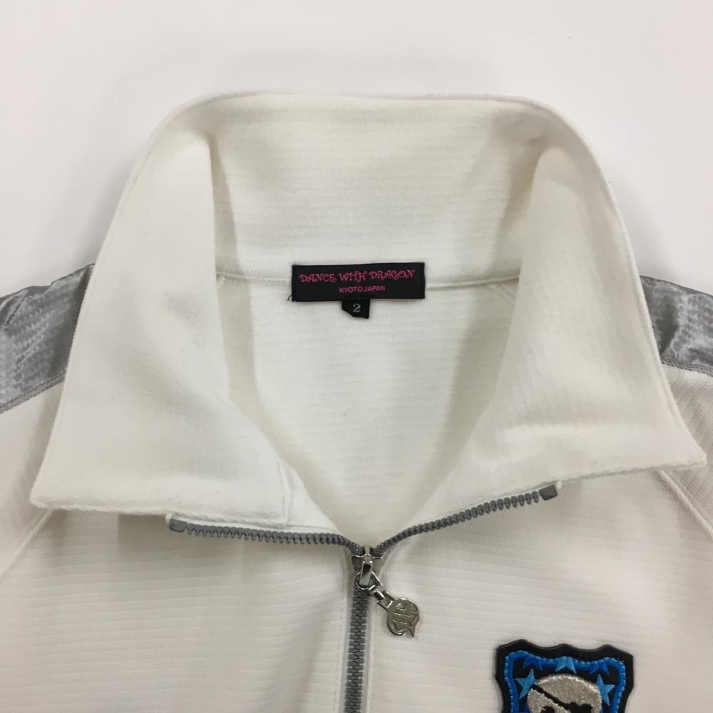 【美品】ダンスウィズドラゴン 長袖ハイネックシャツ 白×シルバー 袖ロゴライン レディース 2(M) ゴルフウェア Dance With Dragon
