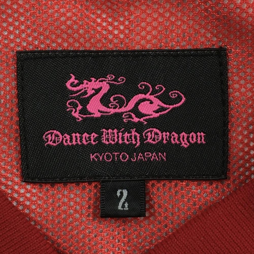 【超美品】ダンスウィズドラゴン 半袖スニード レッド×黒 フロントレオパード柄ロゴ レディース 2(M) ゴルフウェア Dance With Dragon