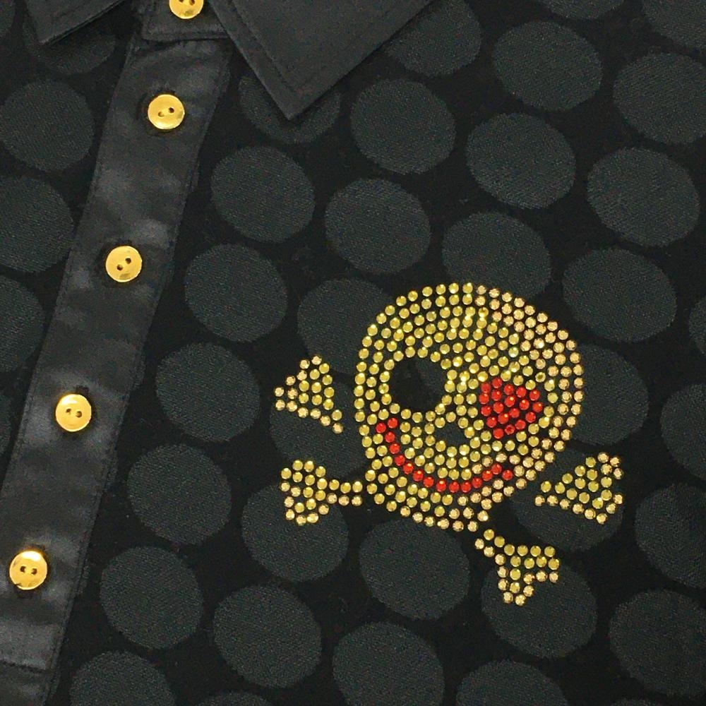 【超美品】ダンスウィズドラゴン 長袖ポロシャツ 黒 身頃ドット ラインストーンスカル レディース 2(M) ゴルフウェア Dance With Dragon
