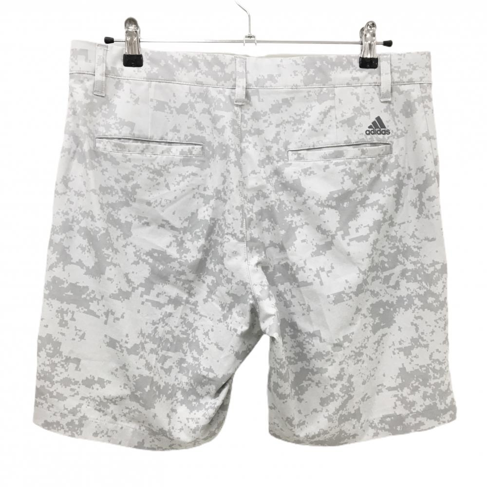 【美品】アディダス ハーフパンツ オフホワイト×ライトグレー モザイクカモフラ調柄 ストレッチ メンズ 88 ゴルフウェア adidas