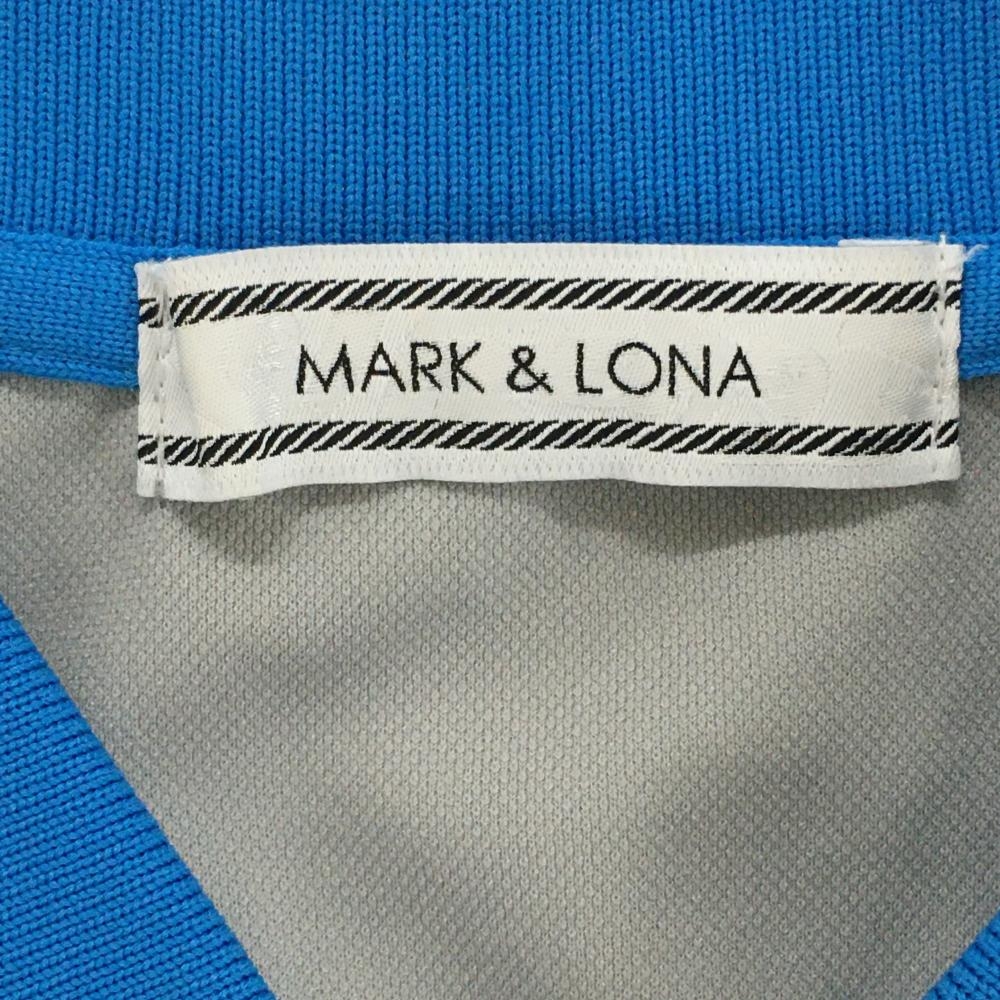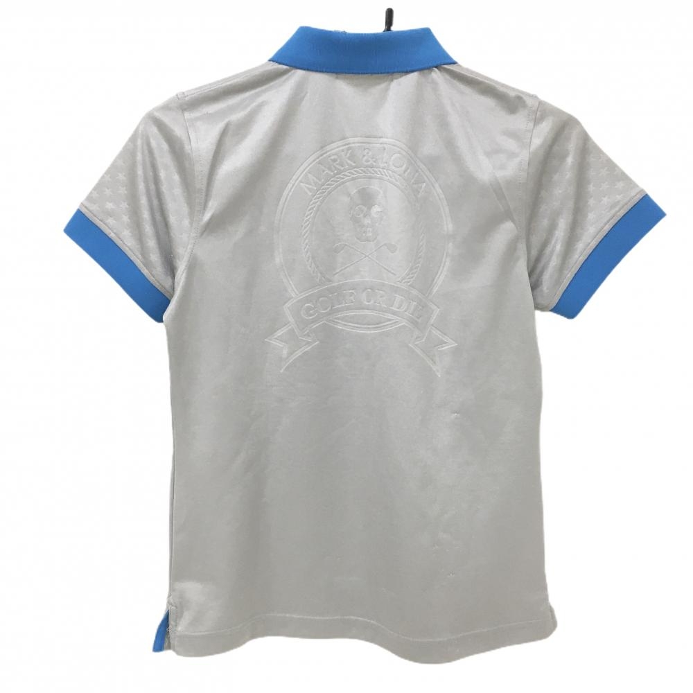 マークアンドロナ 半袖ポロシャツ グレー系 総柄地模様 襟・袖口ライトブルー レディース サイズ表記なし ゴルフウェア MARK&LONA