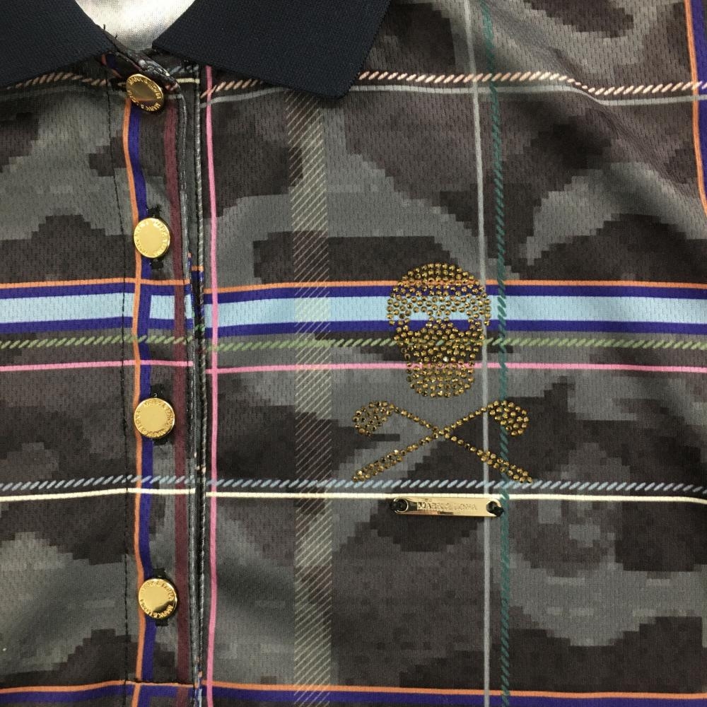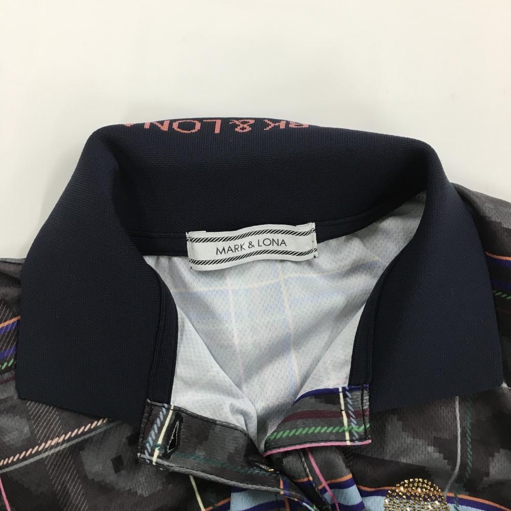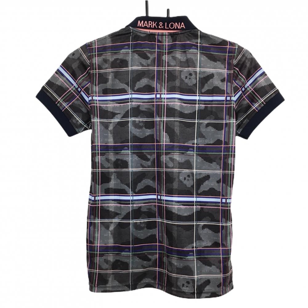 【美品】マークアンドロナ 半袖ポロシャツ ダークグレー系×グレー系 カモフラ調 迷彩 チェック レディース S ゴルフウェア MARK&LONA