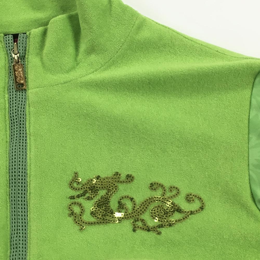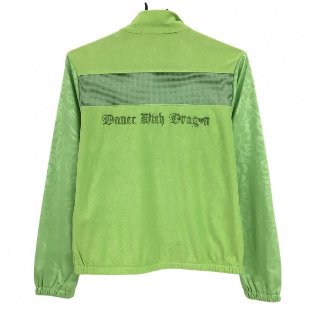 【超美品】ダンスウィズドラゴン ジャケット ライトグリーン 身頃パイル地 袖総柄 レディース 2(M) ゴルフウェア Dance With Dragon