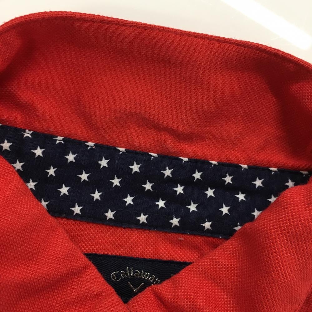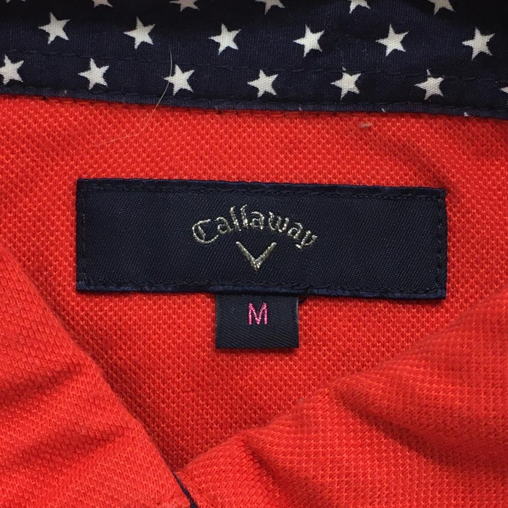 キャロウェイ 長袖ポロシャツ レッド 袖白ライン 胸ポケット ベアワッペン ボタンダウン レディース M ゴルフウェア Callaway