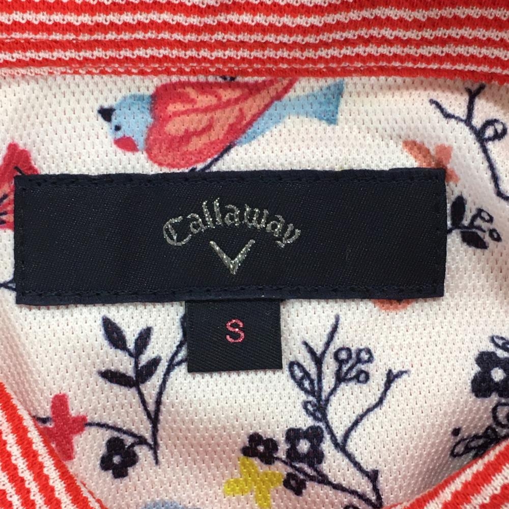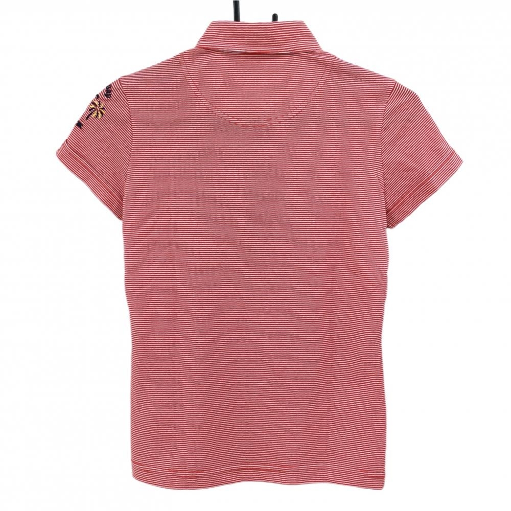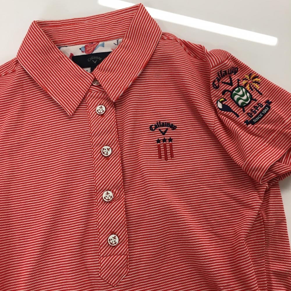 【超美品】キャロウェイ 半袖ポロシャツ レッド×白 ボーダー ロゴ刺しゅう イカリボタン レディース S ゴルフウェア Callaway