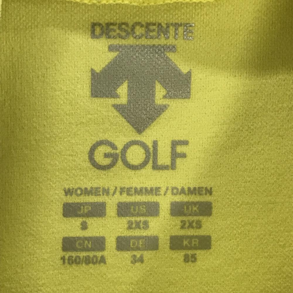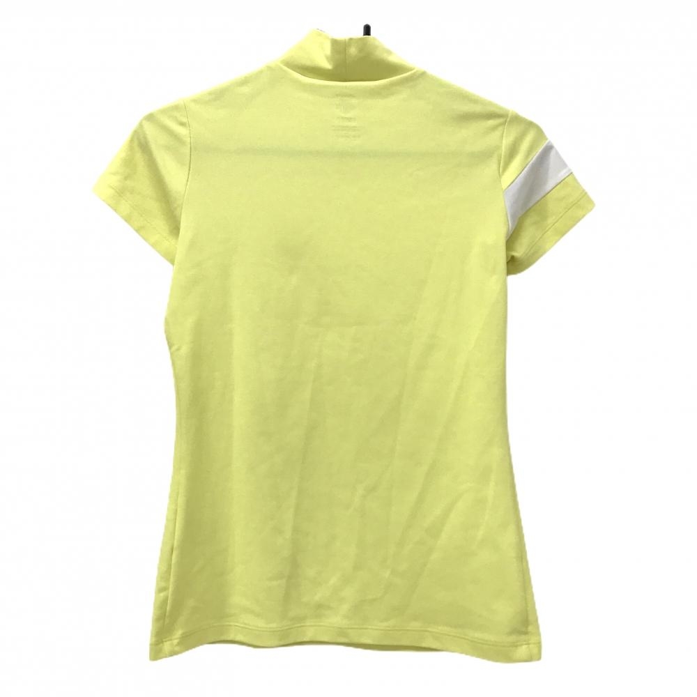 デサントゴルフ 半袖ハイネックシャツ イエロー×白 ロゴプリント 中田英寿 レディース S ゴルフウェア DESCENTE