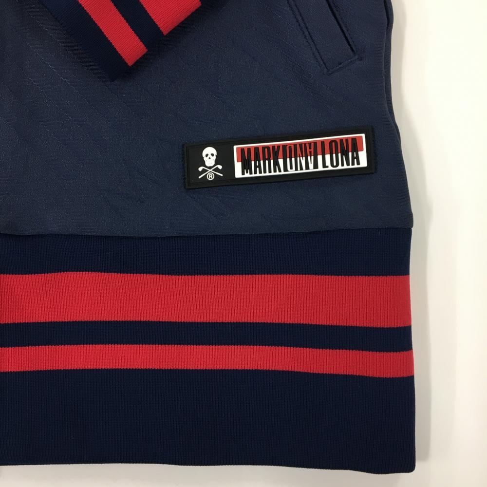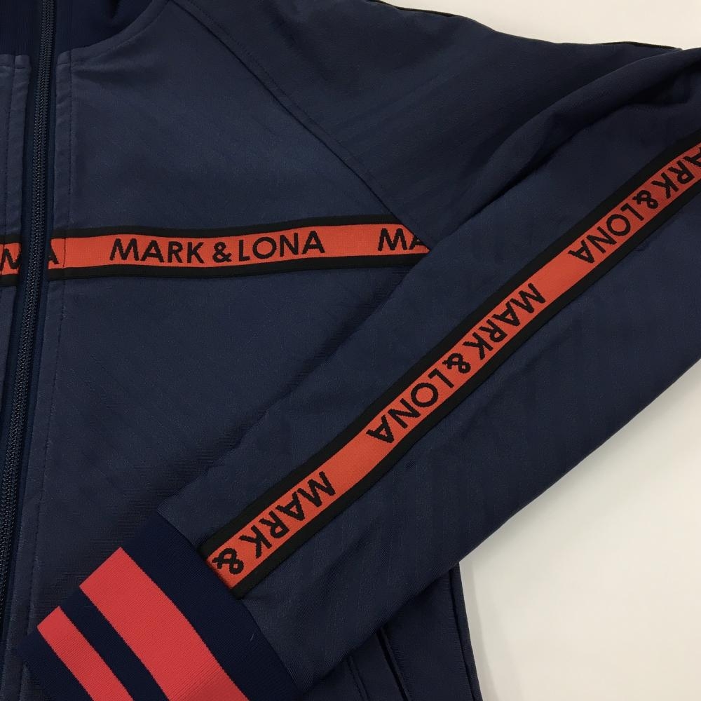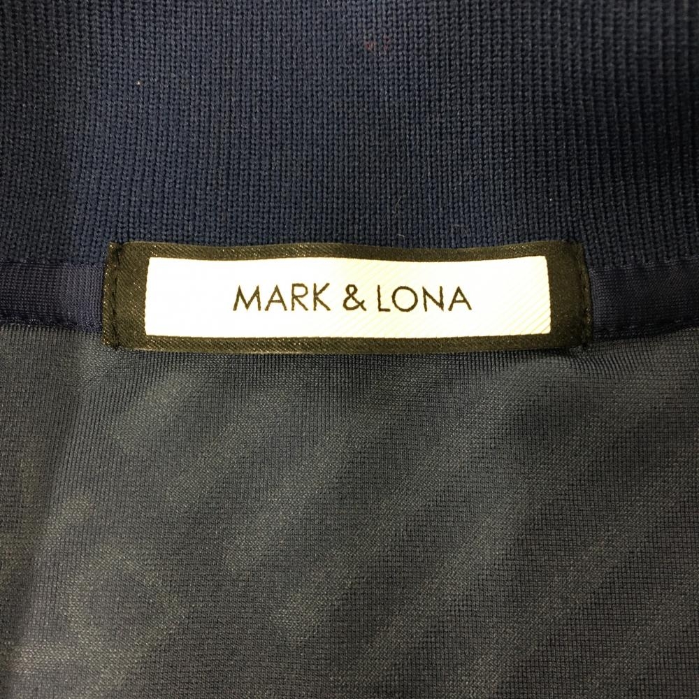 【超美品】マークアンドロナ ブルゾン ネイビー×レッド 斜めロゴ総柄地模様 バックロゴ レディース 36(S) ゴルフウェア MARK&LONA
