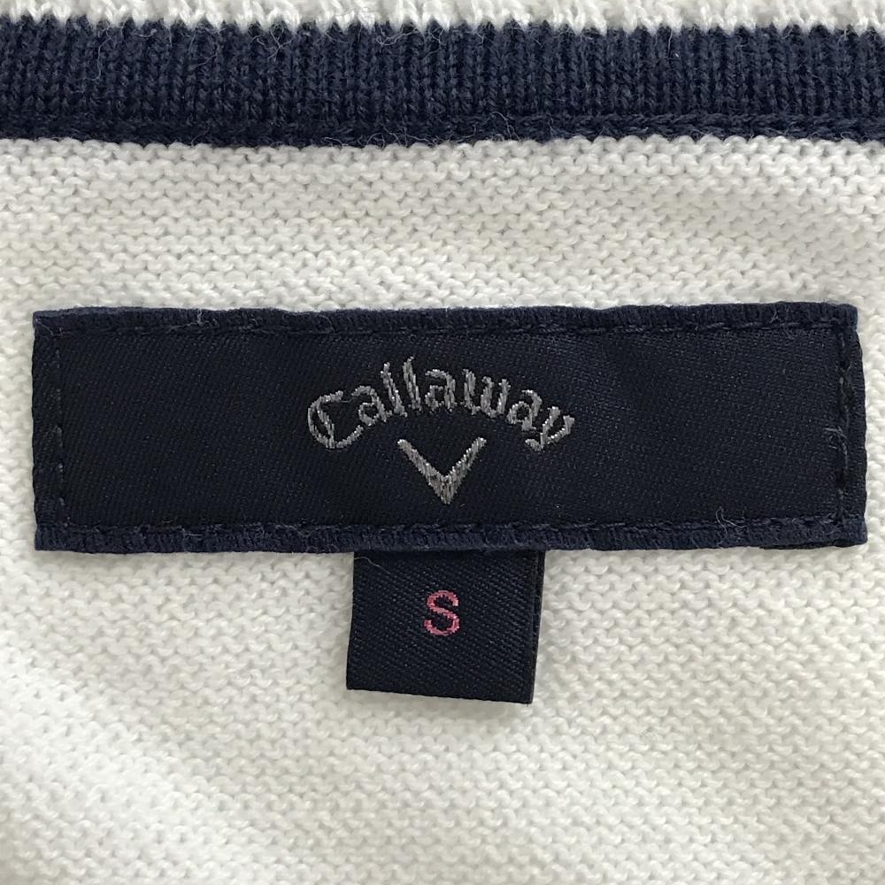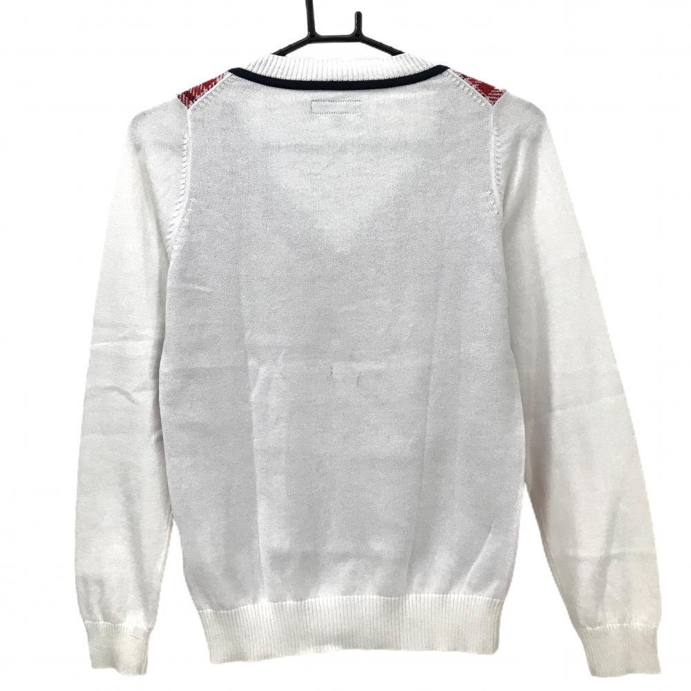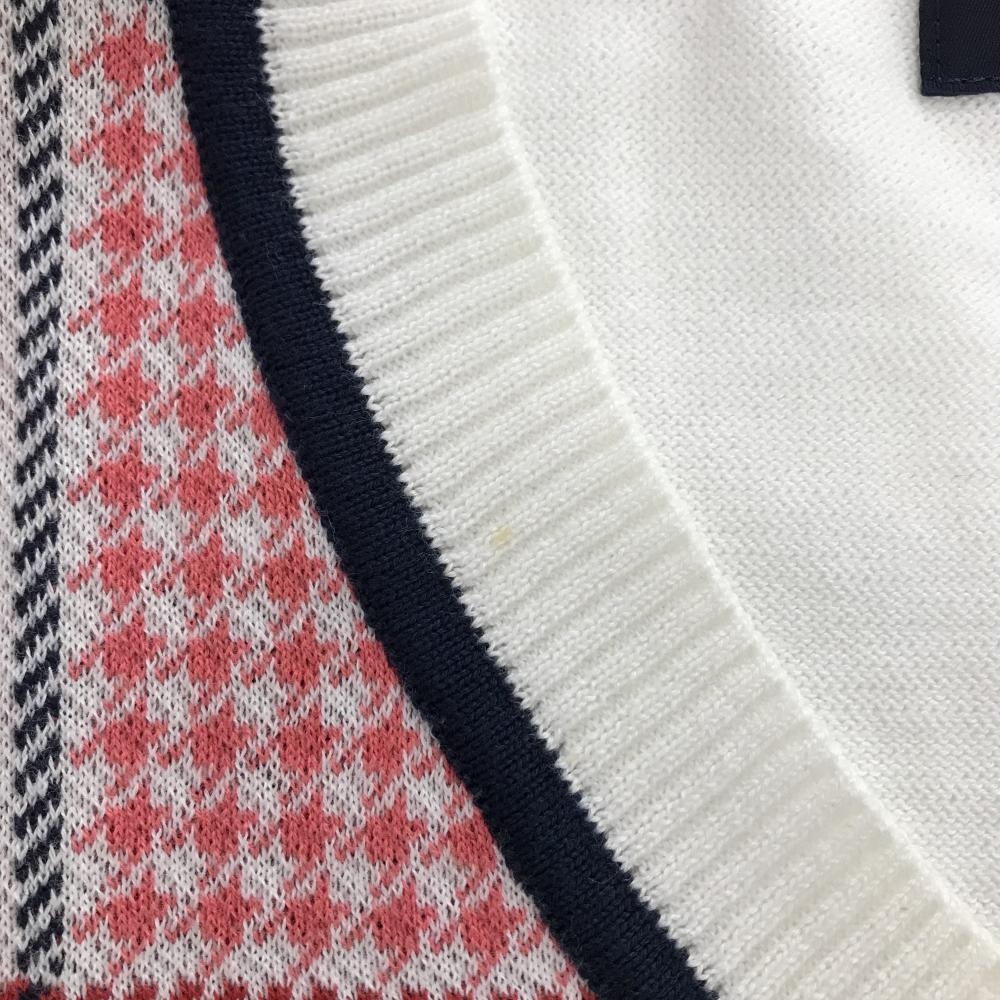 キャロウェイ セーター 白×ピンク 身頃格子チェック柄 Vネック レディース S ゴルフウェア Callaway