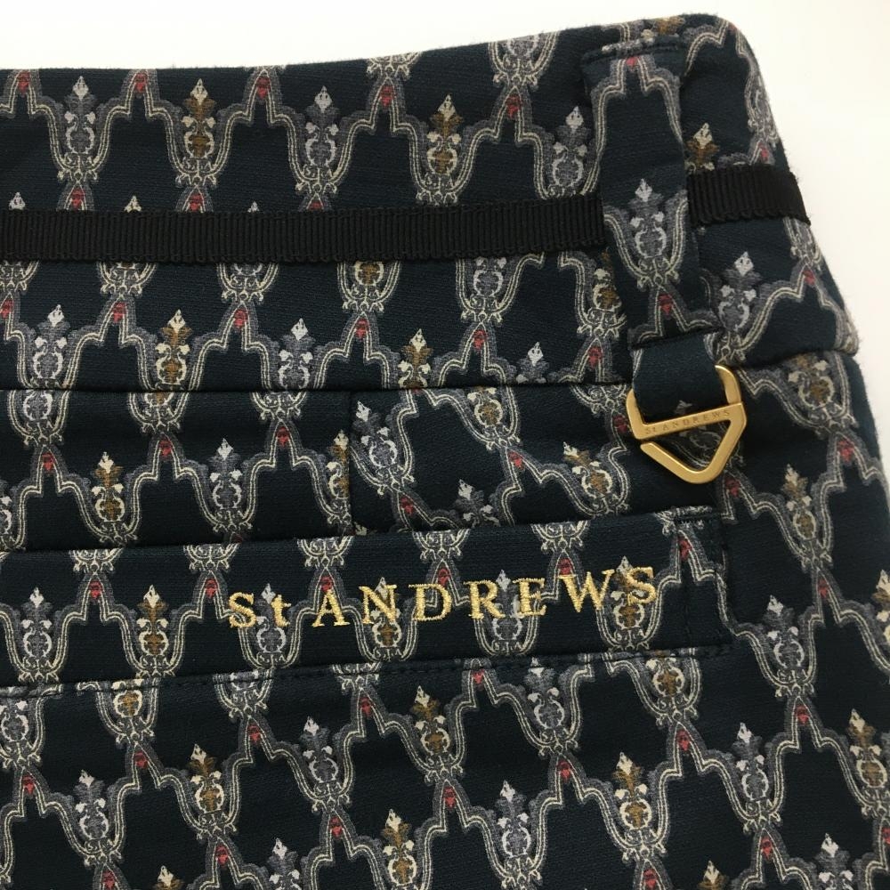 【超美品】セントアンドリュース パンツ ネイビー×グレー 総柄 裏起毛 レディース S ゴルフウェア St ANDREWS