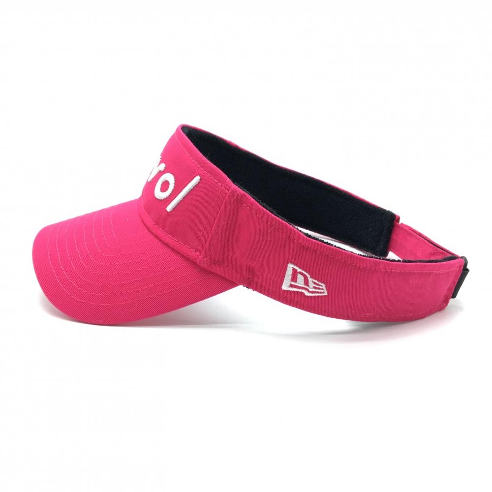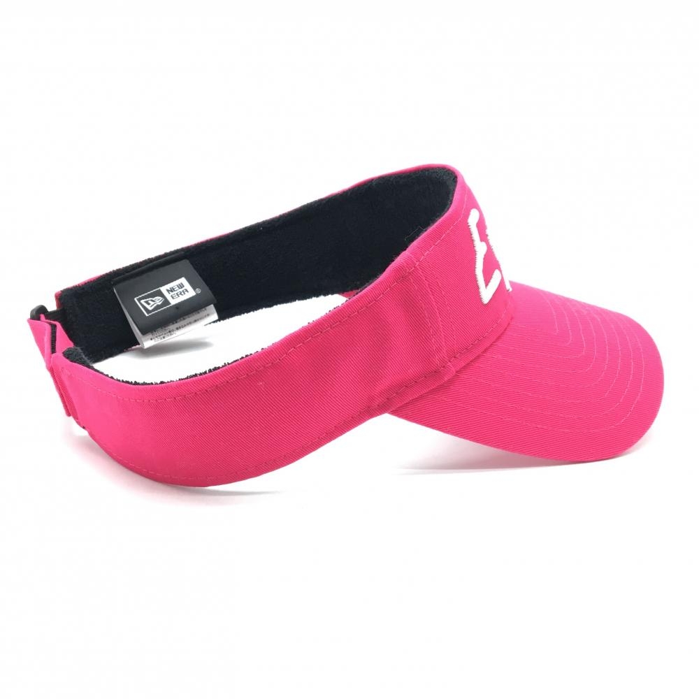 【超美品】ニューエラ サンバイザー ピンク×白 立体ロゴ刺しゅう 内側パイル地 ゴルフウェア New Era