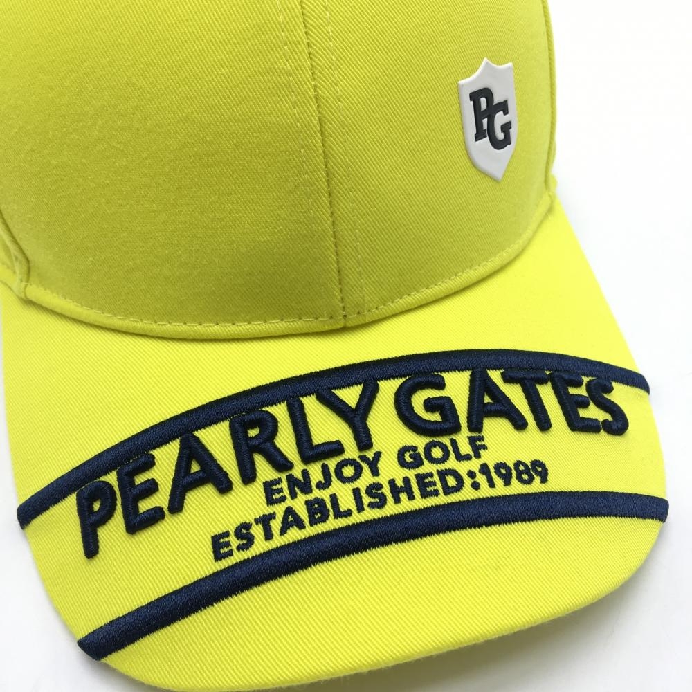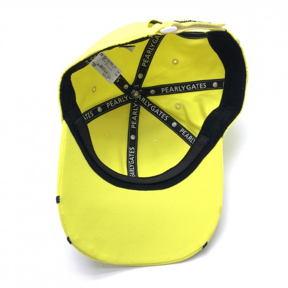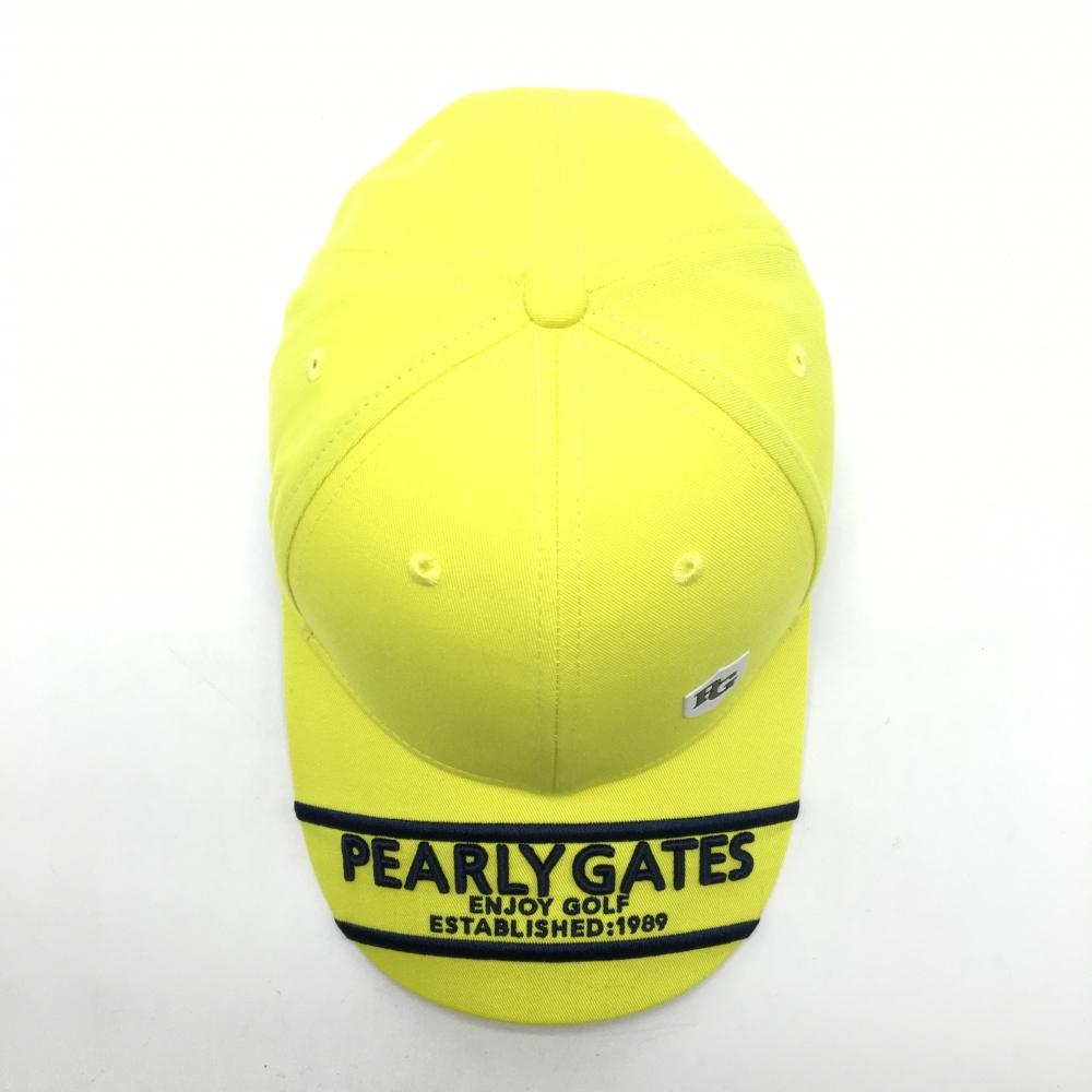 【超美品】パーリーゲイツ キャップ 蛍光イエロー×ネイビー ロゴ刺しゅう FR ゴルフウェア PEARLY GATES