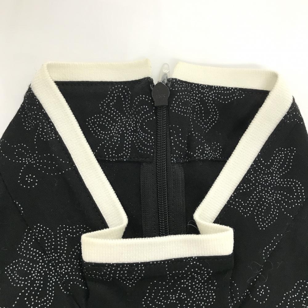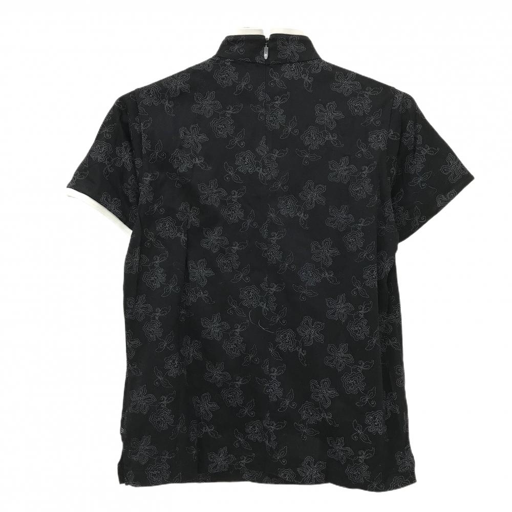 【美品】ミズノ 半袖ハイネックシャツ 黒×白 花柄 レディース M ゴルフウェア MIZUNO