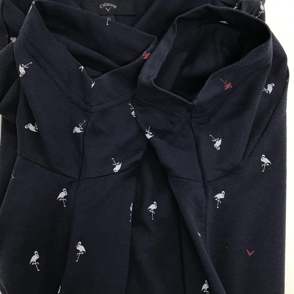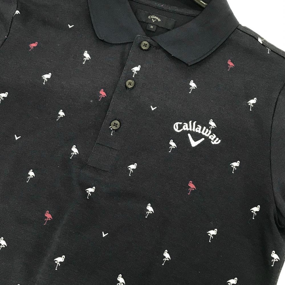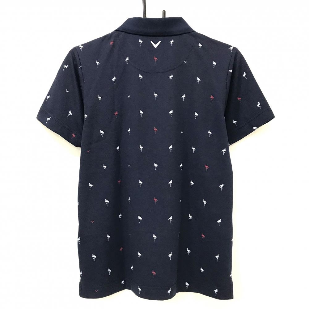 キャロウェイ 半袖ポロシャツ ネイビー×白 フラミンゴ柄 ロゴ刺しゅう メンズ M ゴルフウェア Callaway