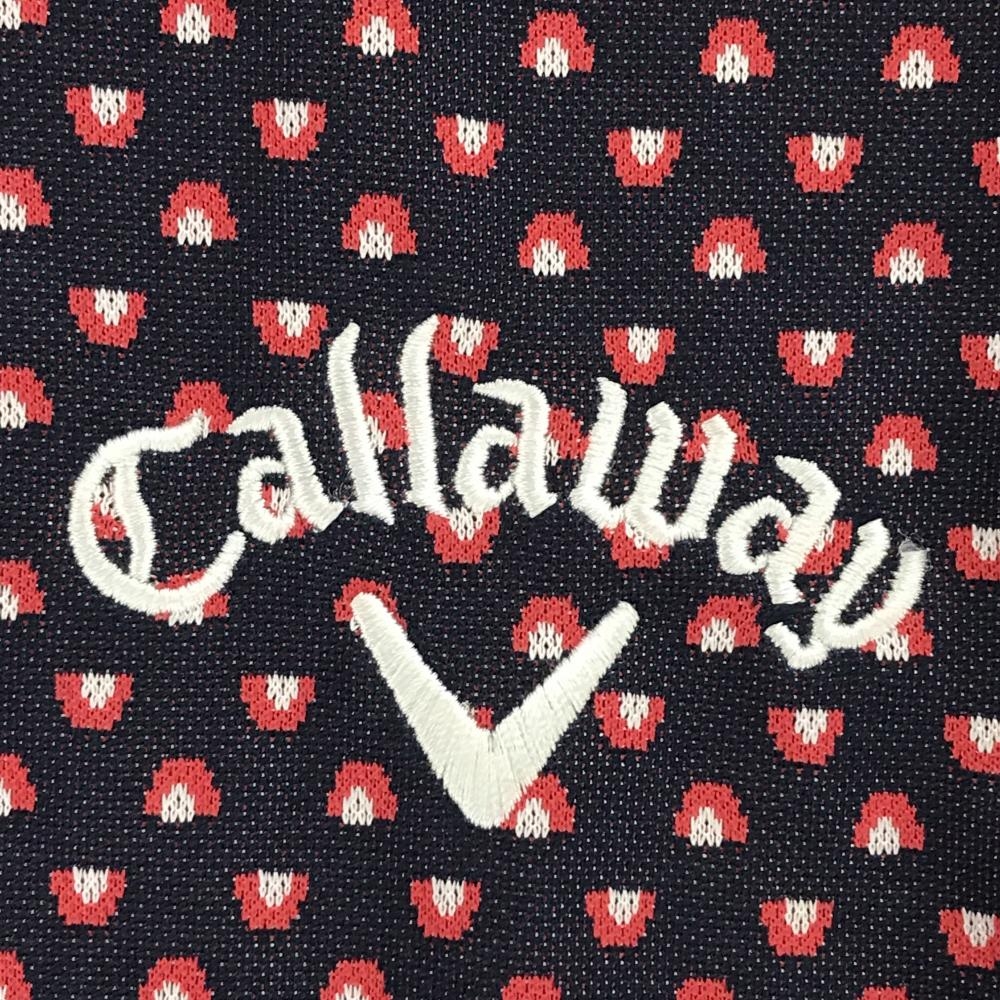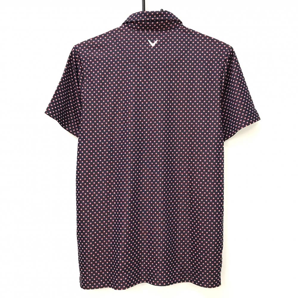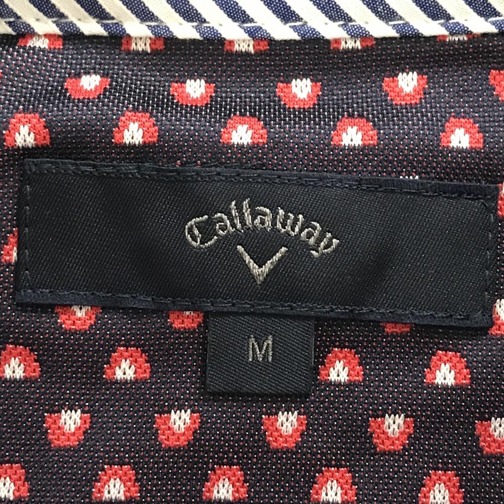【超美品】キャロウェイ 半袖ポロシャツ ネイビー×オレンジ 総柄 ロゴ刺しゅう メンズ M ゴルフウェア Callaway