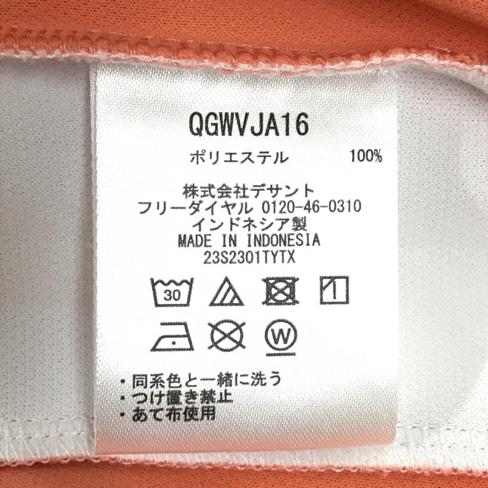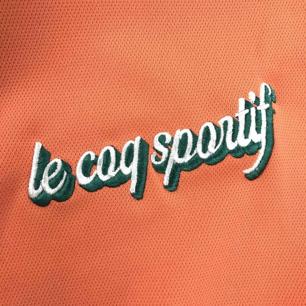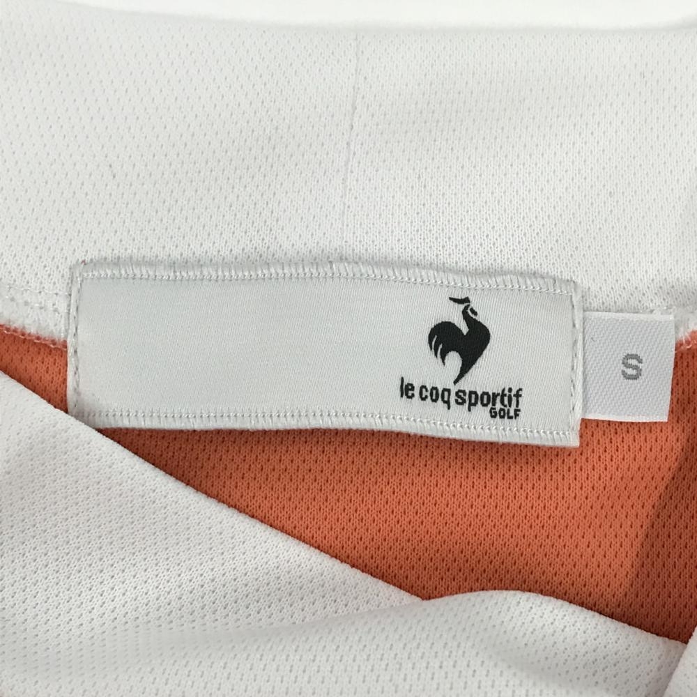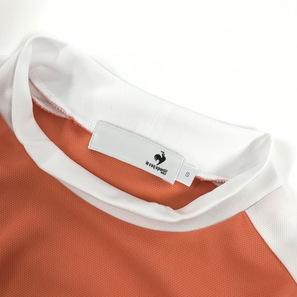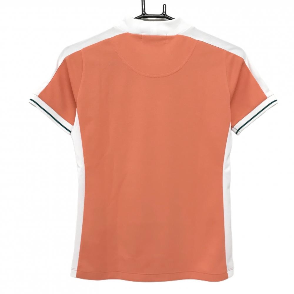 【美品】ルコックゴルフ 半袖ハイネックシャツ オレンジ×白 ロゴグリーン レディース S ゴルフウェア 2023年モデル le coq sportif