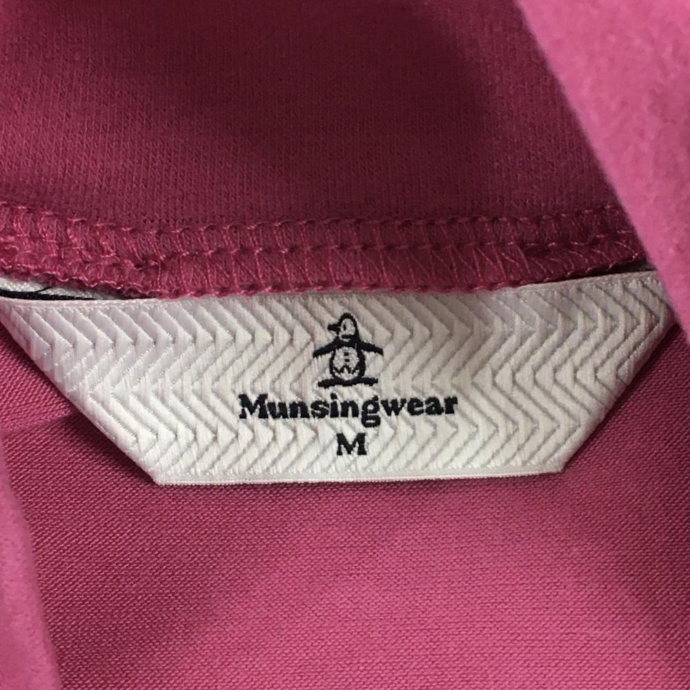 マンシングウェア 長袖ハイネックシャツ ピンク×白 ロゴプリント レディース M ゴルフウェア Munsingwear