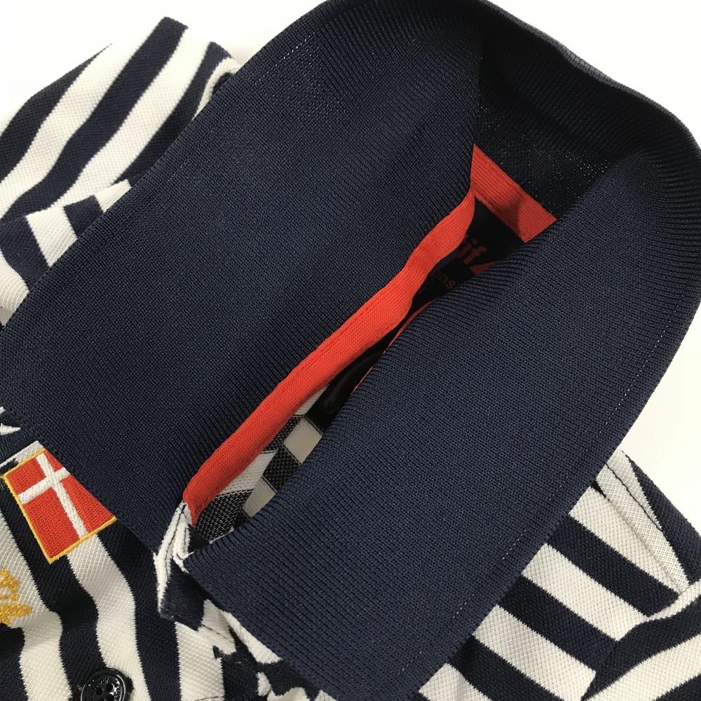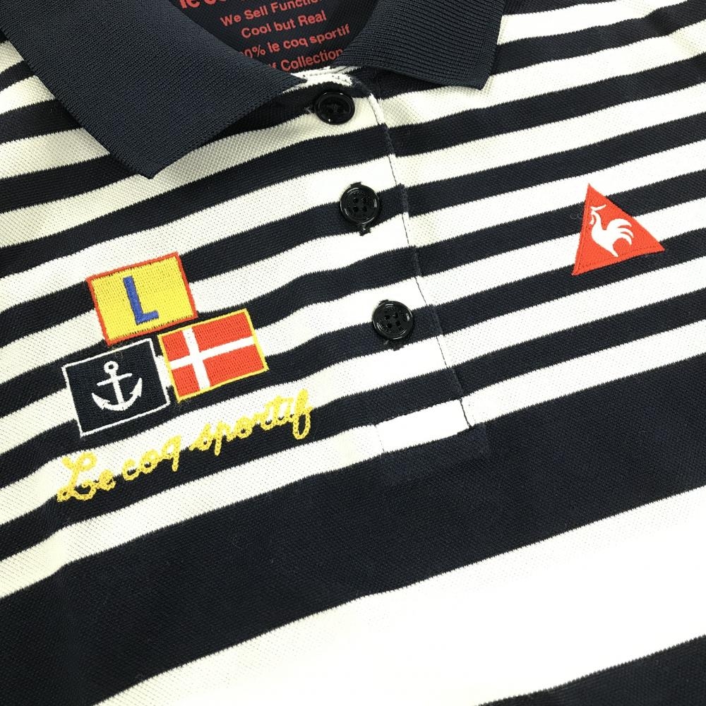 ルコックゴルフ 半袖ポロシャツ 白×ネイビー ボーダー 胸ロゴ レディース (M) ゴルフウェア le coq sportif