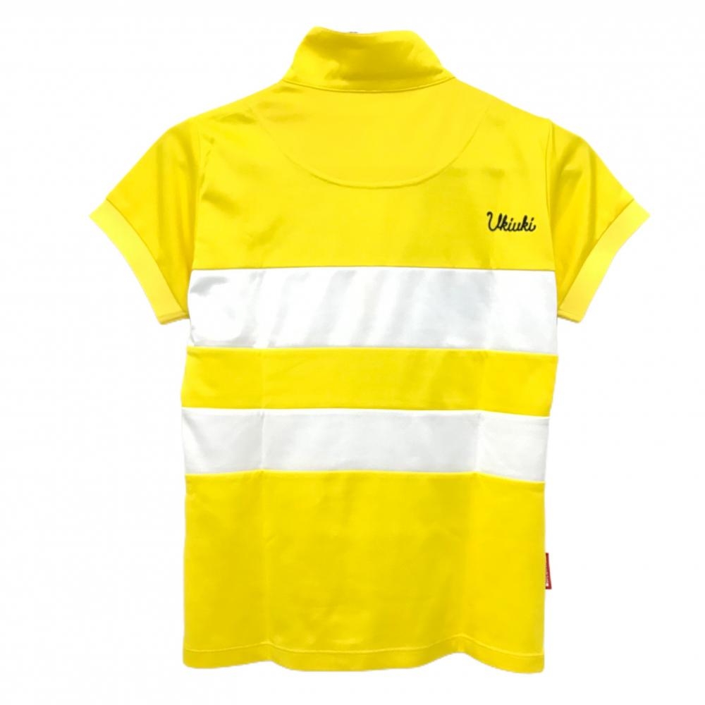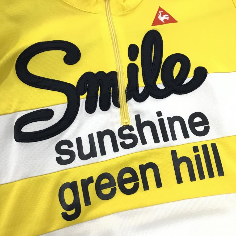 【超美品】ルコックゴルフ 半袖ハイネックシャツ イエロー×白 ボーダー ロゴネイビー レディース M ゴルフウェア le coq sportif