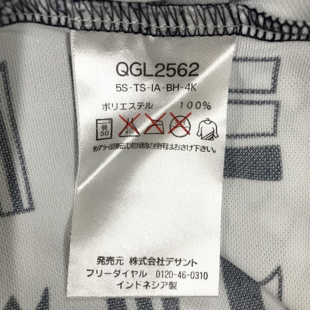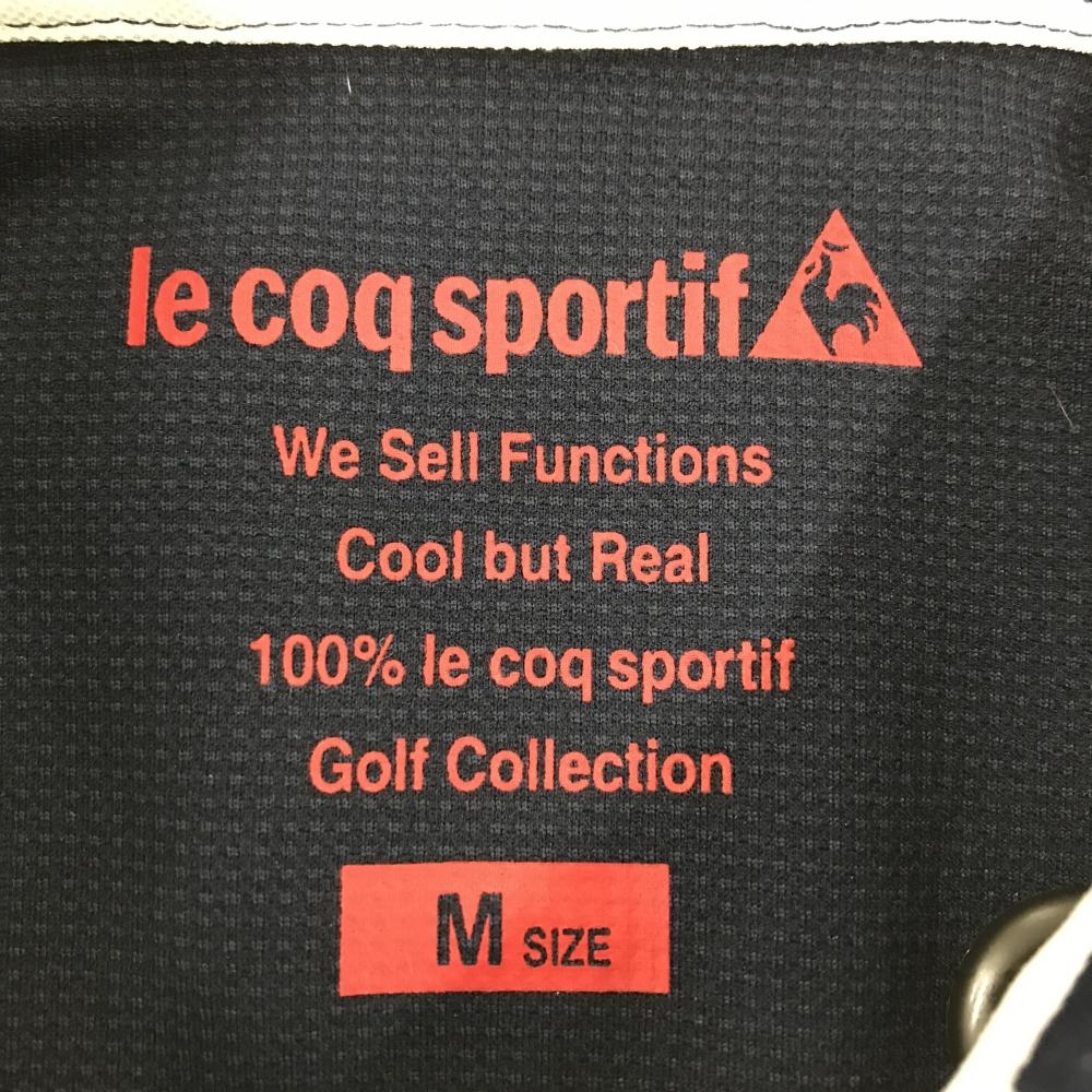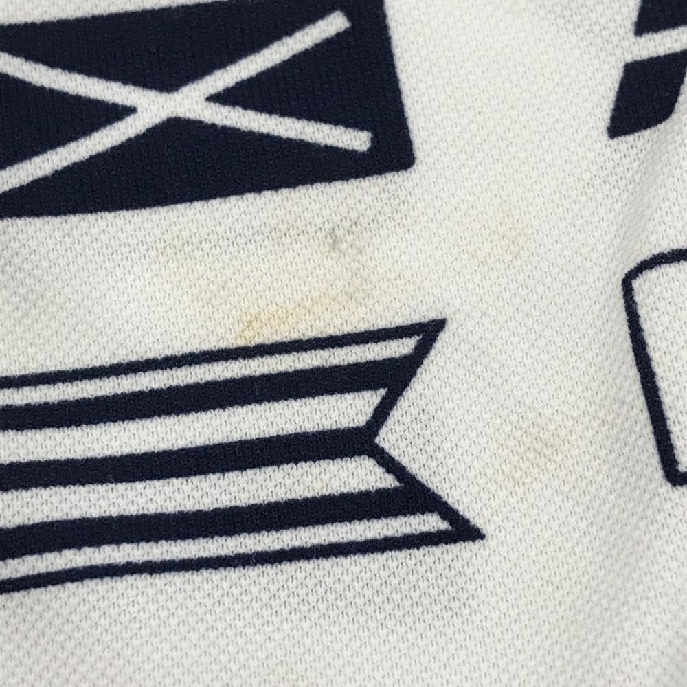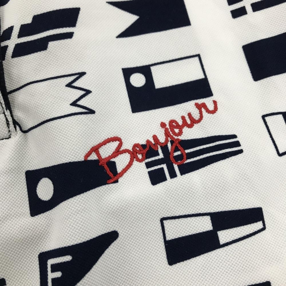 【美品】ルコックゴルフ 半袖ポロシャツ 白×ネイビー 総柄 国旗 胸ロゴ刺しゅう 襟汚れ少 レディース M ゴルフウェア le coq sportif