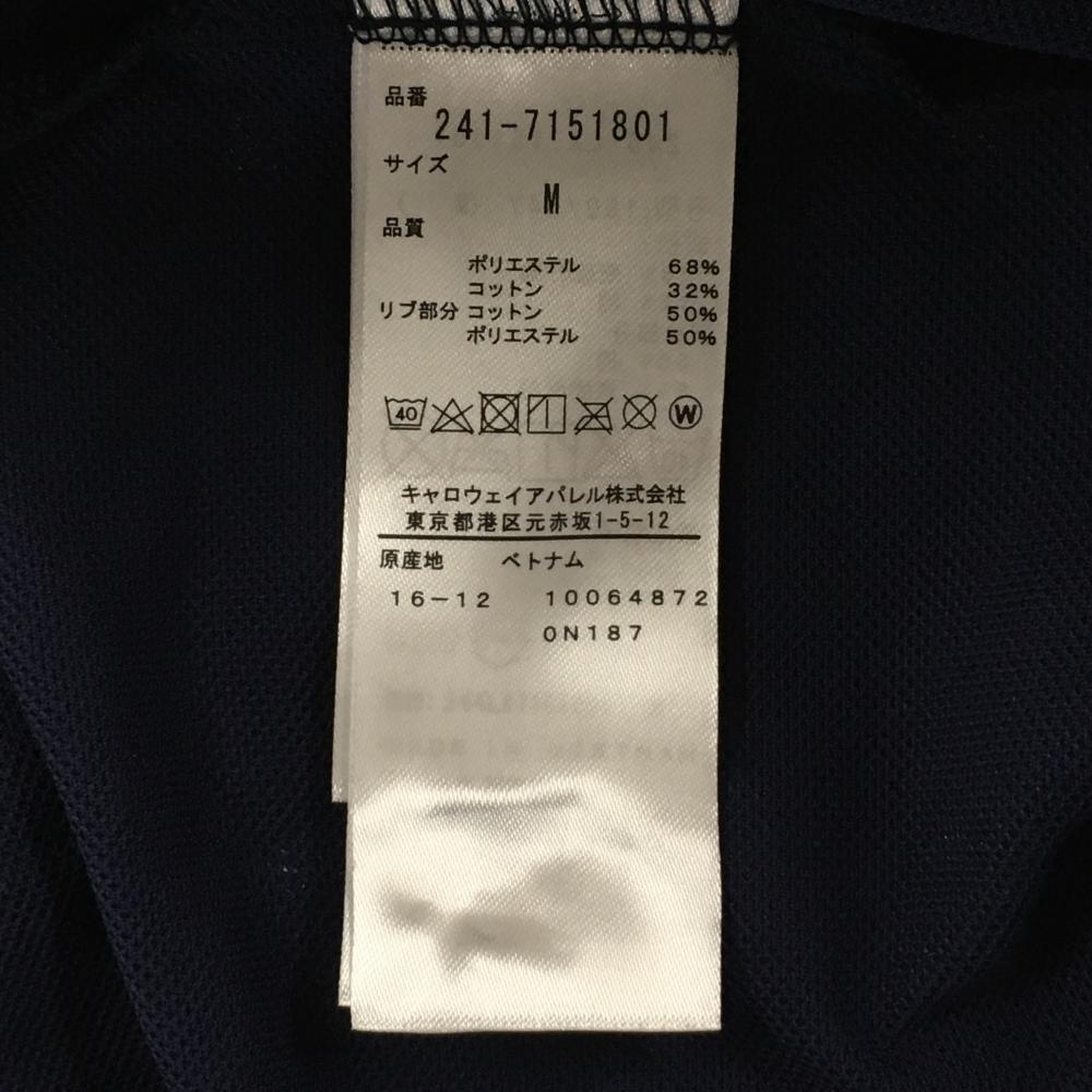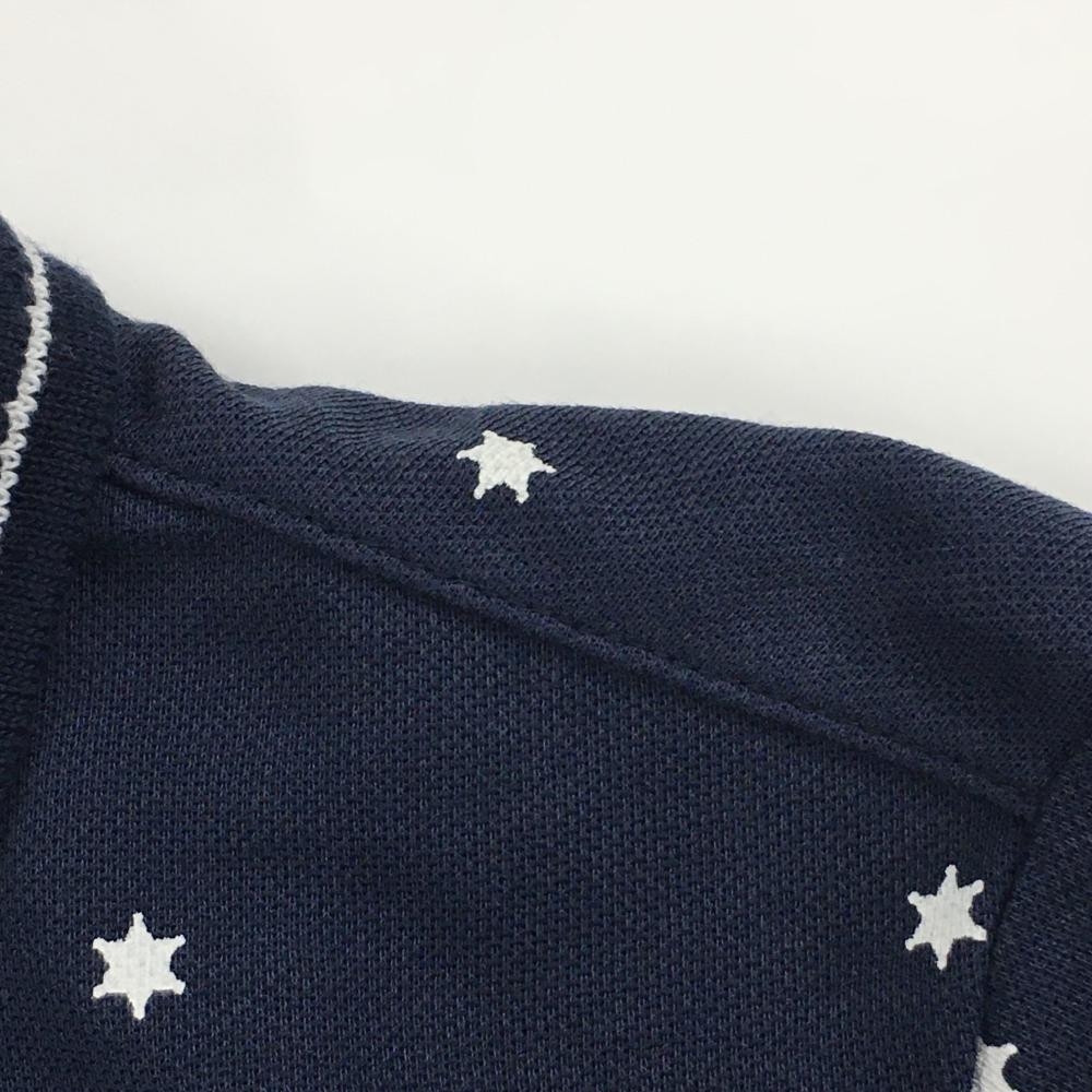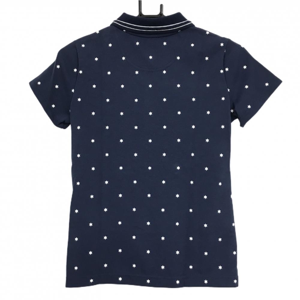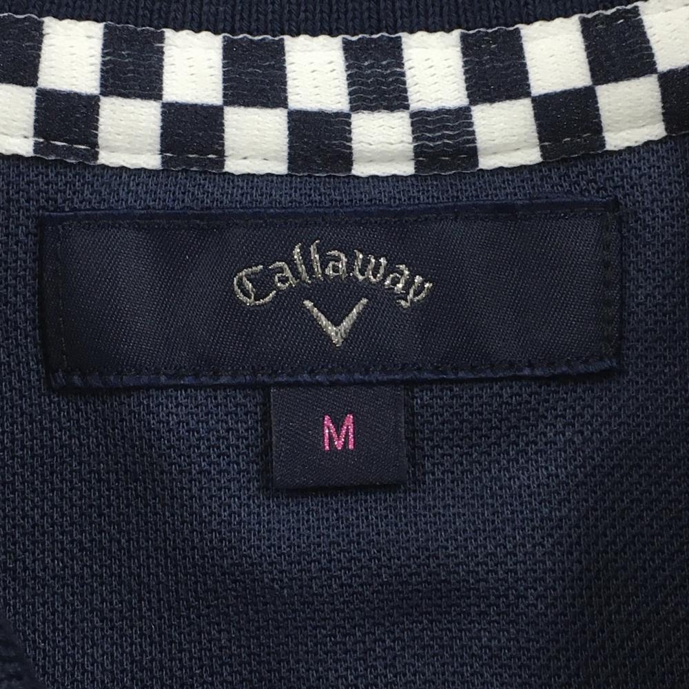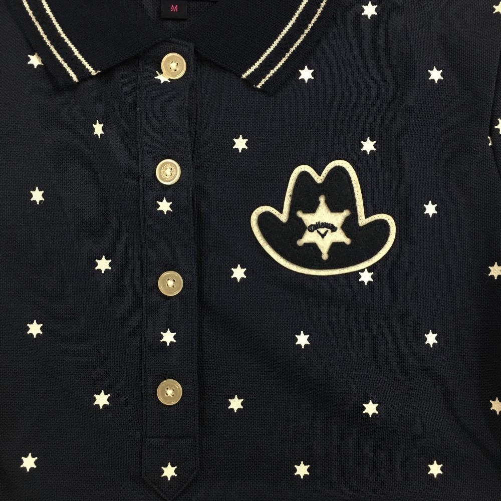 【美品】キャロウェイ 半袖ポロシャツ ネイビー×白 総柄 胸元ワッペン 襟ライン レディース M ゴルフウェア Callaway