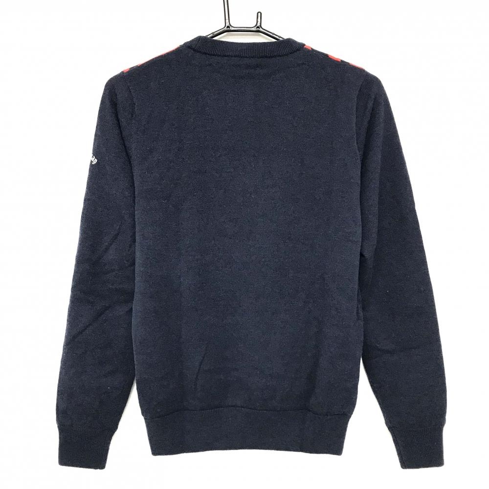 【美品】キャロウェイ セーター ネイビー×白 フロント英字 裏地付き ウール混 レディース M ゴルフウェア Callaway