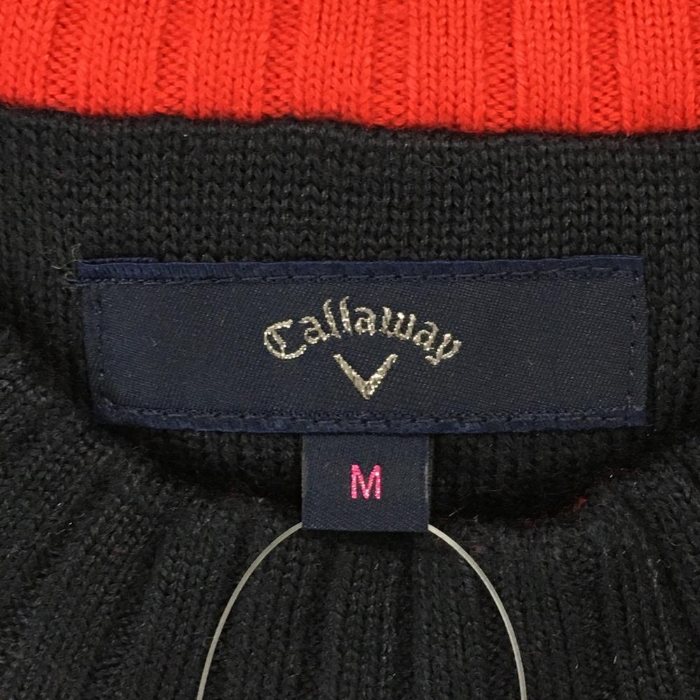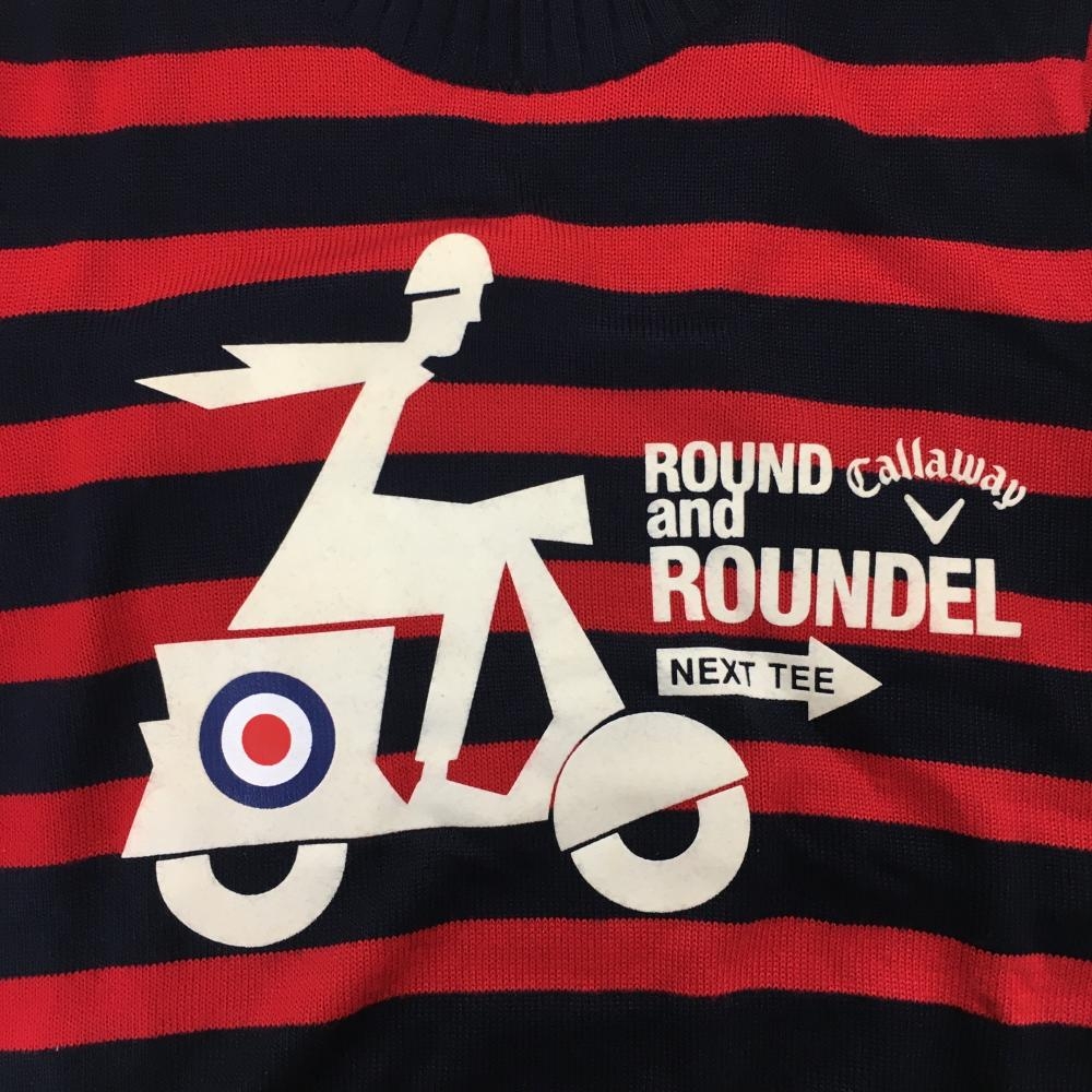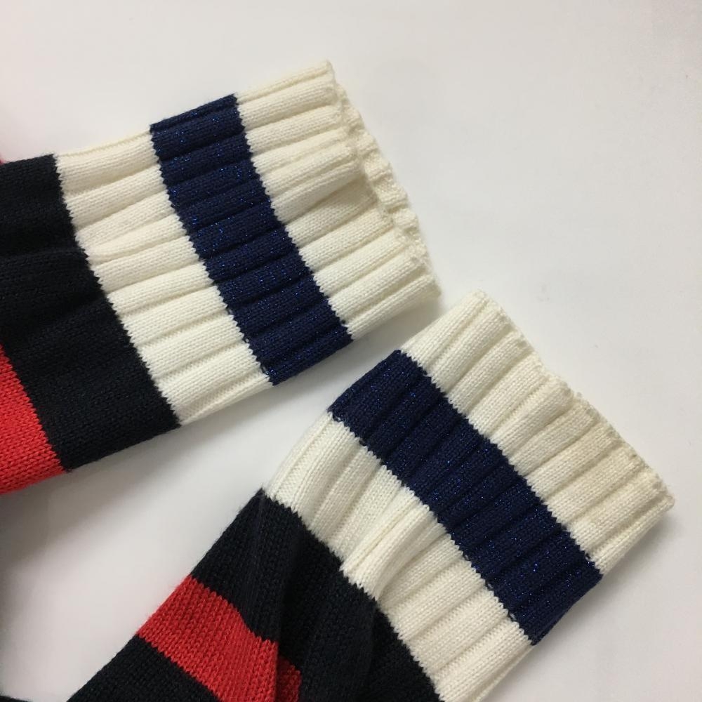キャロウェイ セーター ネイビー×レッド ボーダー フロッキープリント リブライン ウール混 レディース M ゴルフウェア Callaway