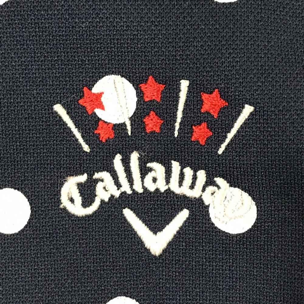 【超美品】キャロウェイ ジャケットブルゾン ネイビー×白 ドット柄 ロゴ刺しゅう レディース S ゴルフウェア Callaway