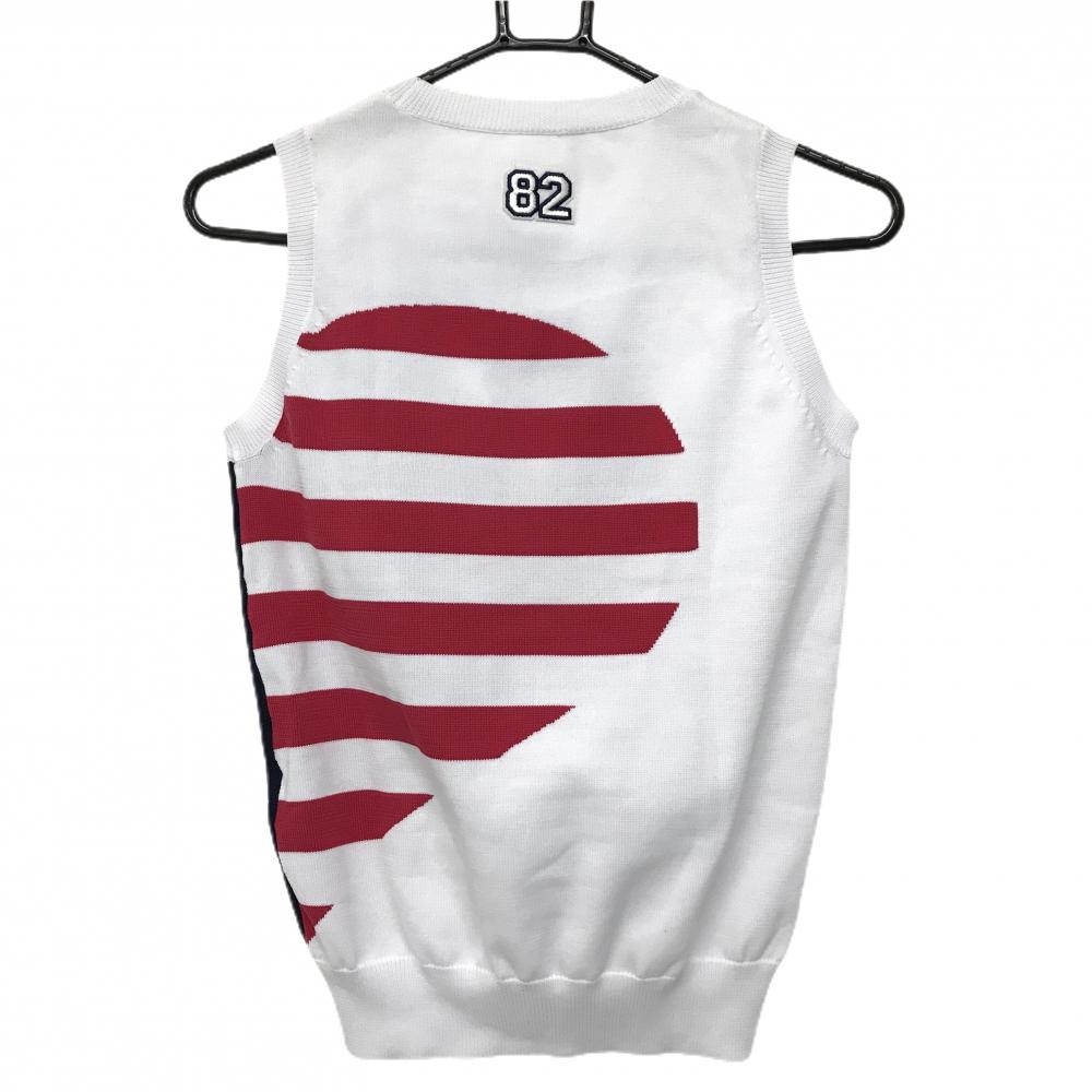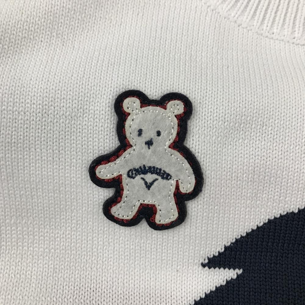 【美品】キャロウェイ ニットベスト 白×ネイビー ベアワッペン 星条旗 レディース S ゴルフウェア Callaway