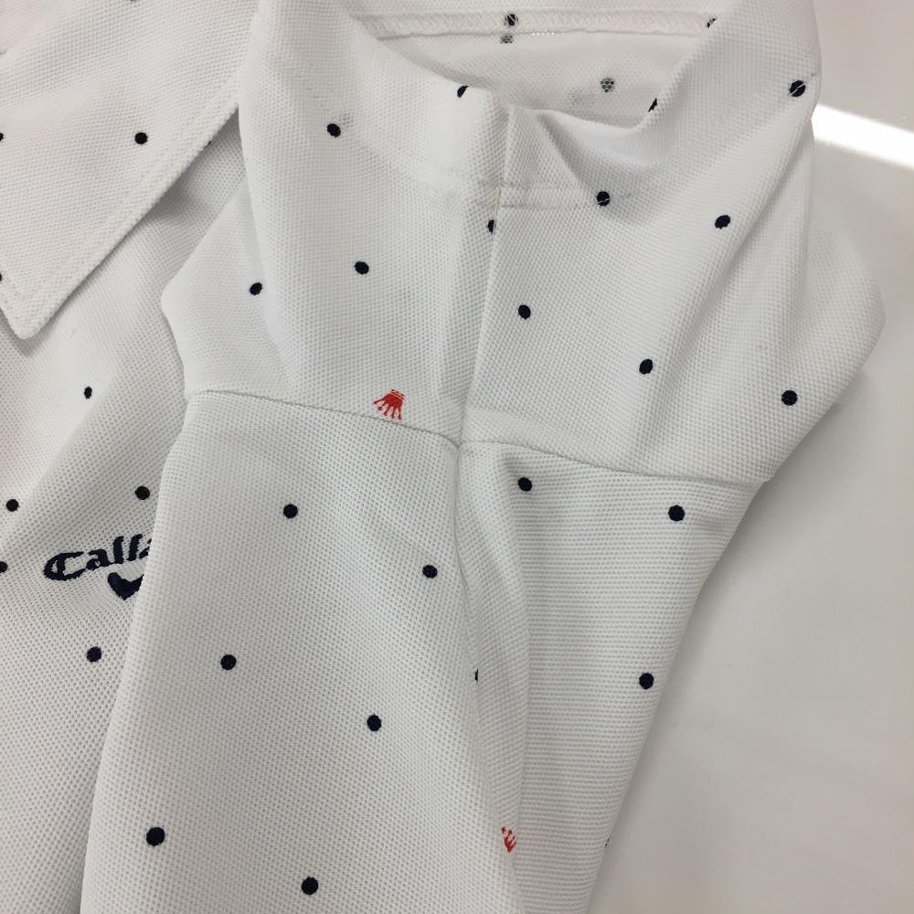 キャロウェイ 半袖ポロシャツ 白×ネイビー ドット ロゴ刺しゅう レディース M ゴルフウェア Callaway