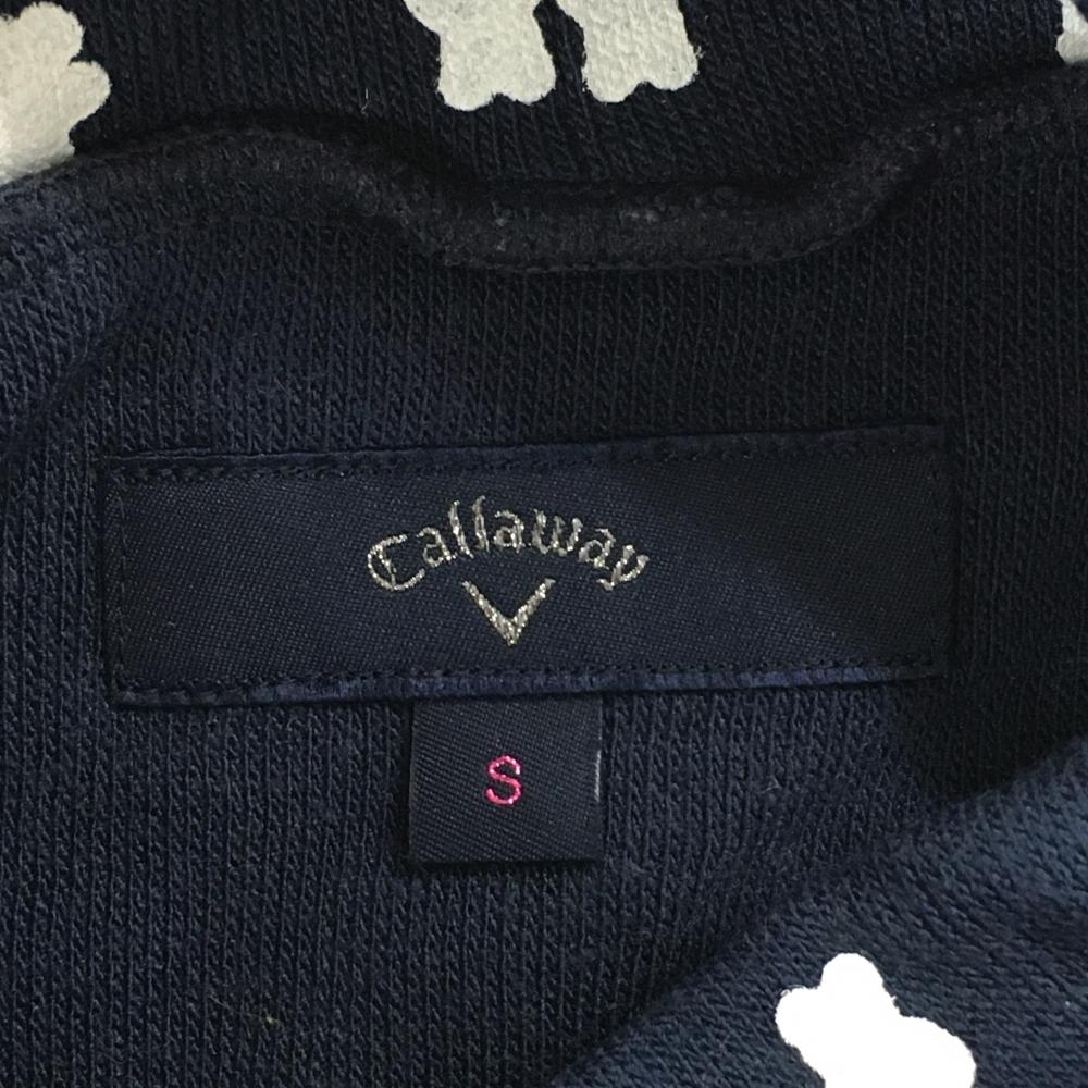 キャロウェイ 長袖ハイネックシャツ ネイビー×白 ベア柄 裏微起毛 アクリル混 レディース S ゴルフウェア Callaway