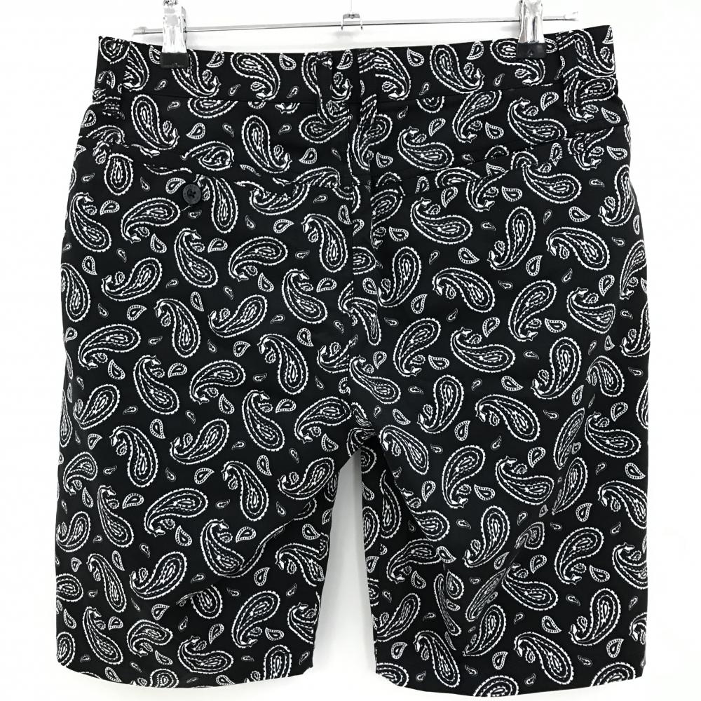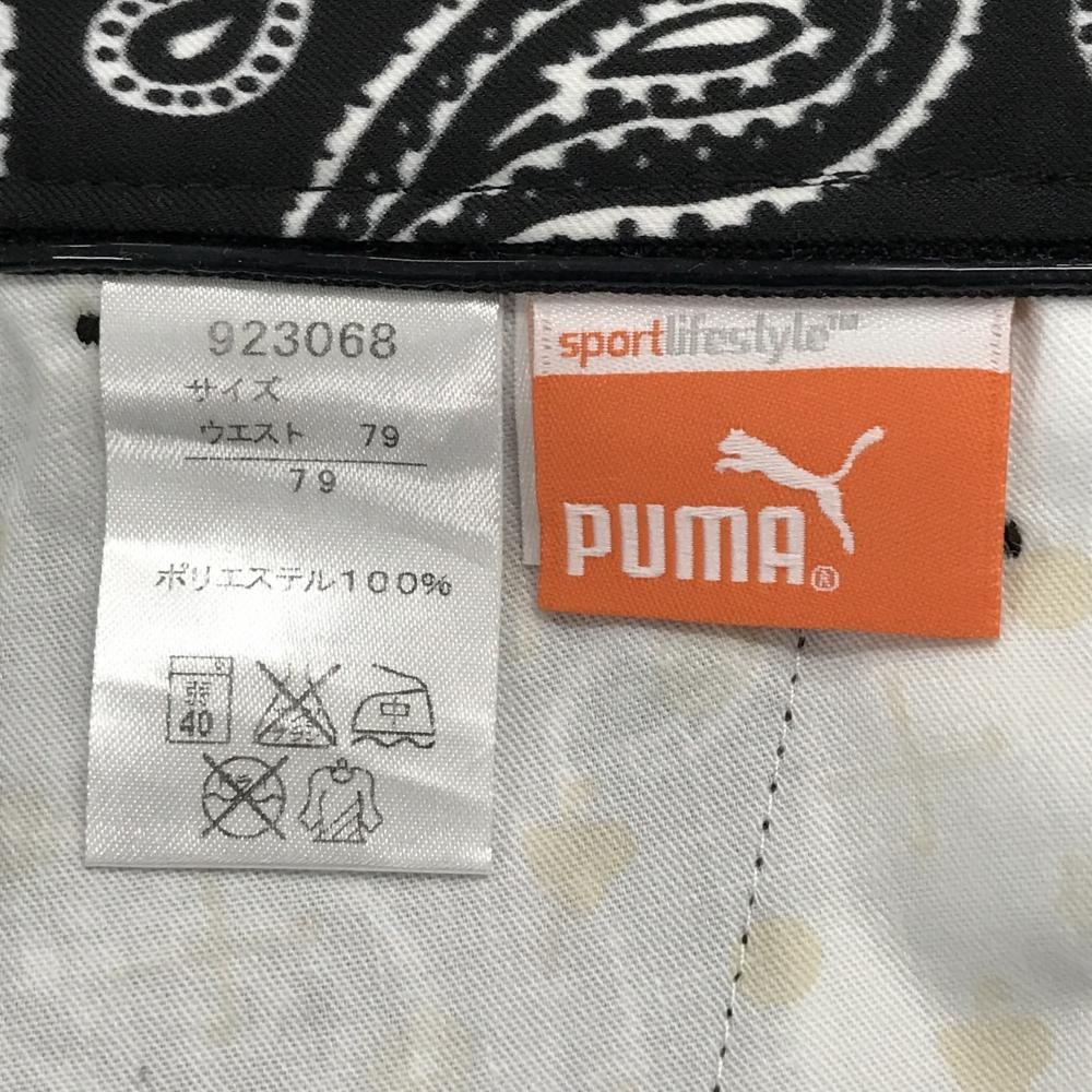 【超美品】プーマ ハーフパンツ 黒×白 ペイズリー ロゴ刺しゅう メンズ 79 ゴルフウェア PUMA