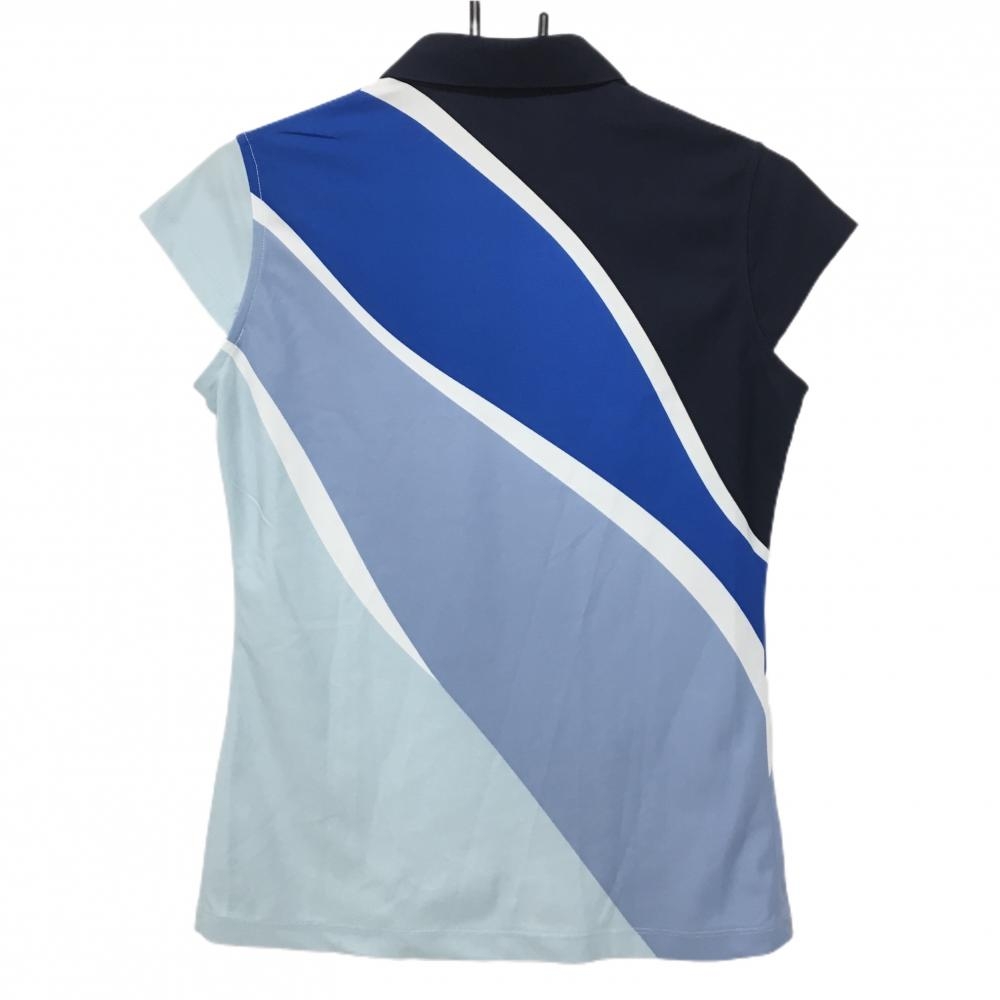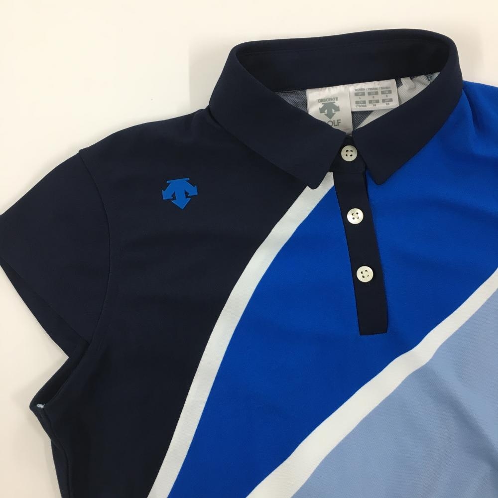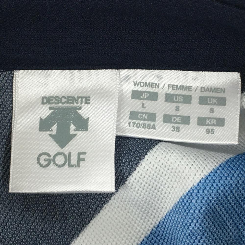 【超美品】デサントゴルフ 半袖ポロシャツ ネイビー×ブルー×白 斜めストライプ風 中田英寿 レディース L ゴルフウェア DESCENTE