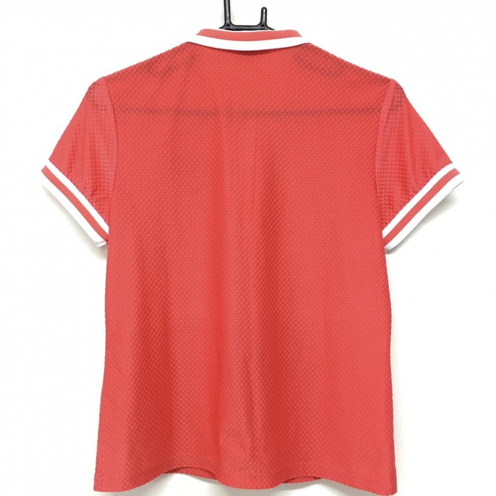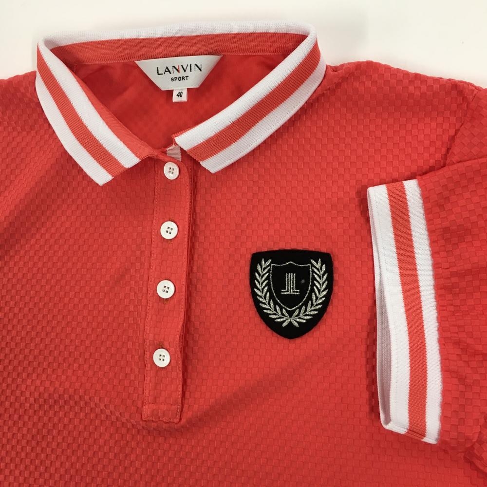 【超美品】ランバンスポール 半袖ポロシャツ レッドピンク×白 凸凹生地 ロゴワッペン レディース 40(L) ゴルフウェア LANVIN SPORT