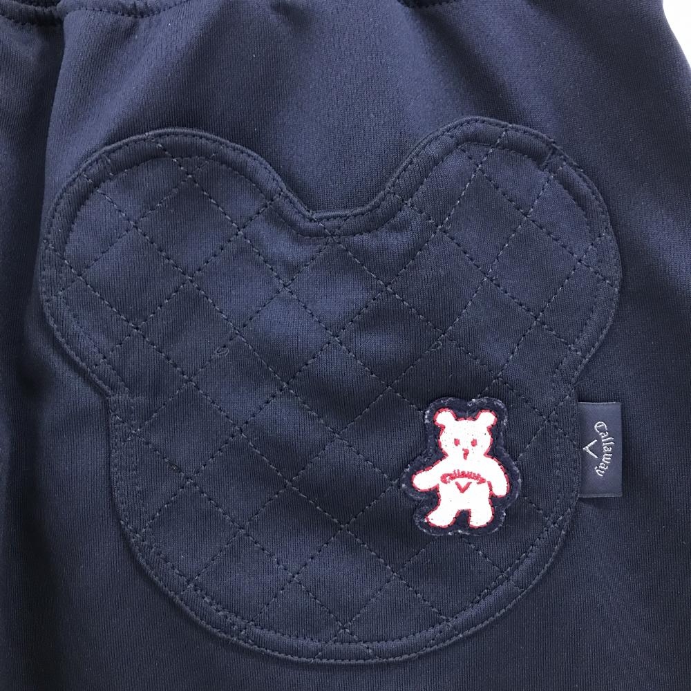 【超美品】キャロウェイ スカート ネイビー×レッド 星 ベアワッペン クマ型ポケット ウエストゴム レディース S ゴルフウェア Callaway