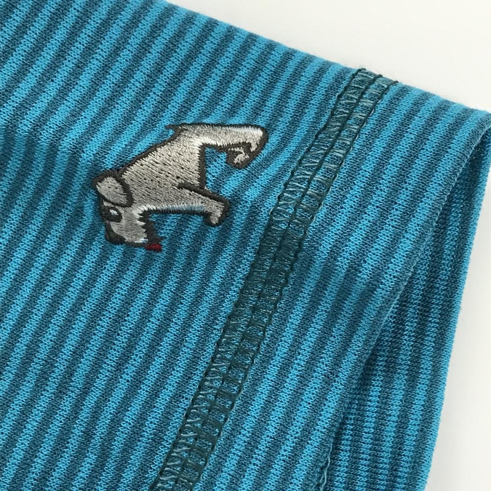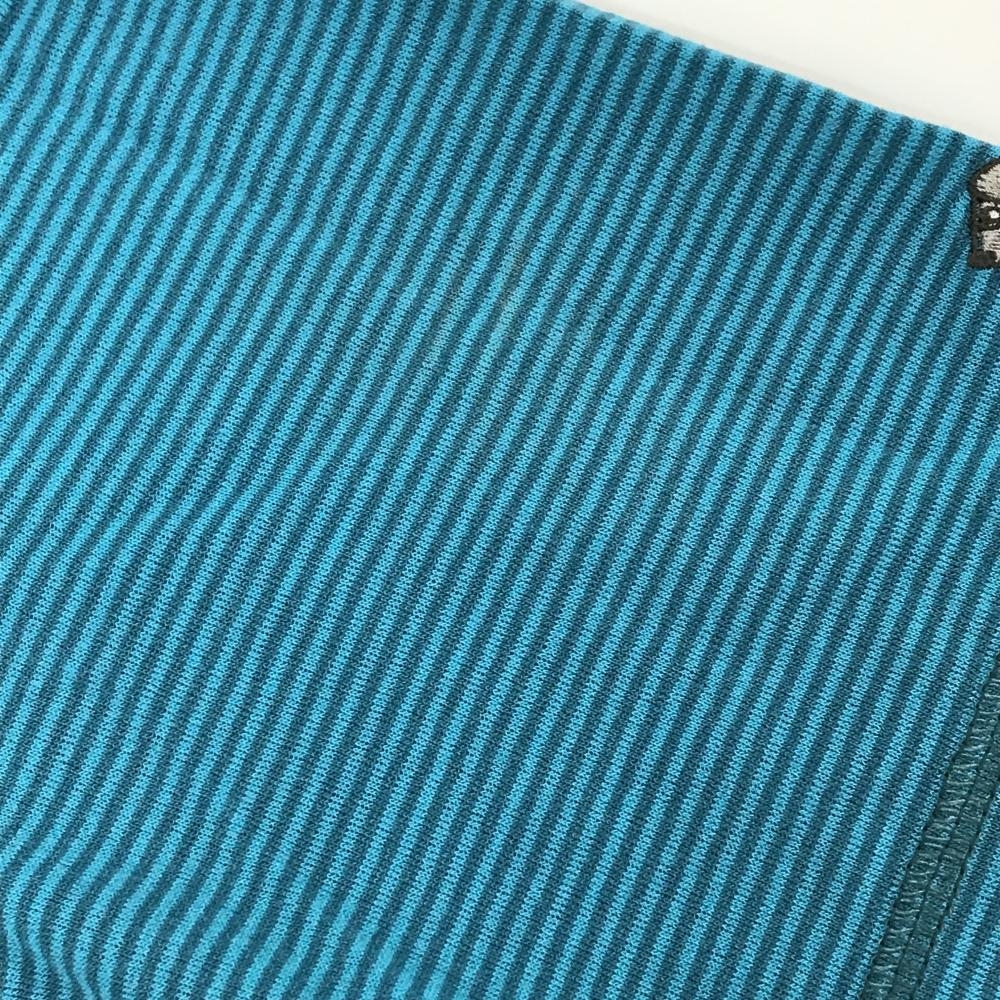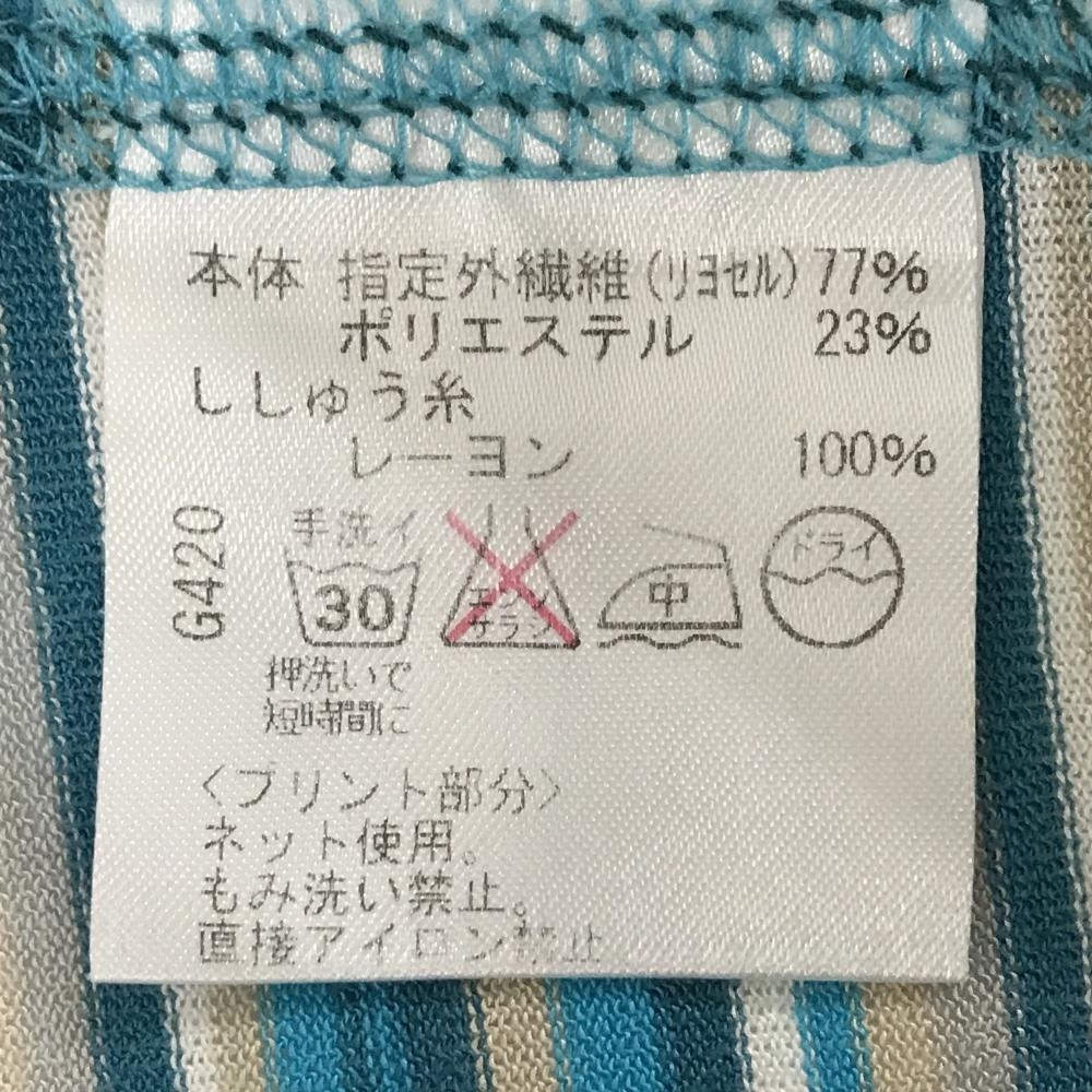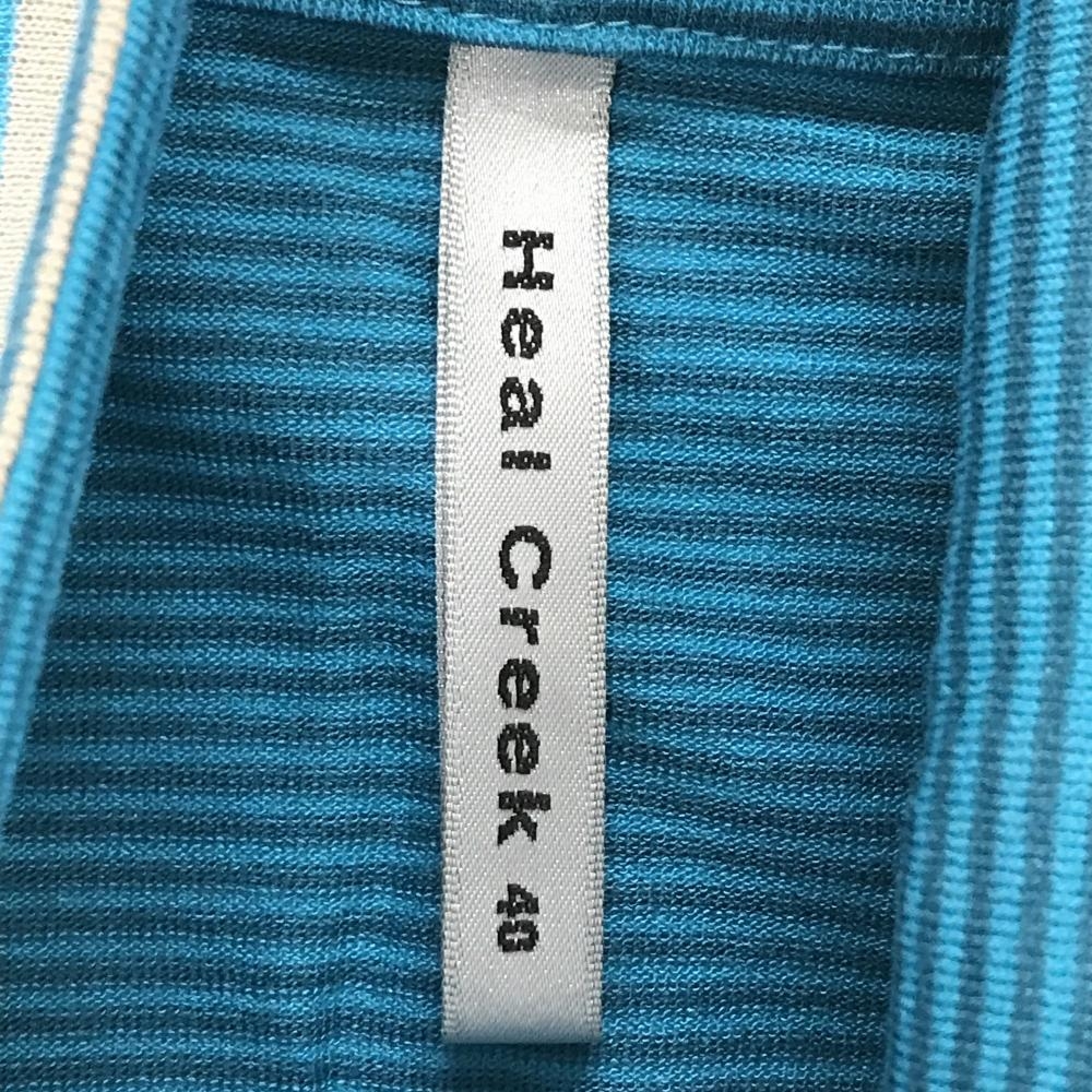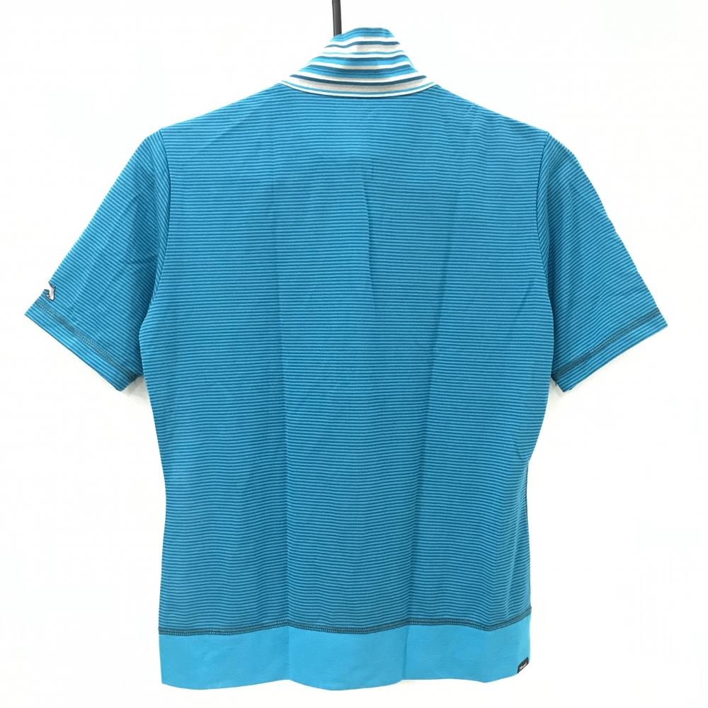 ヒールクリーク 半袖ハイネックシャツ ライトブルー×ベージュ ボーダー ハーフジップ レディース 40(M) ゴルフウェア Heal Creek