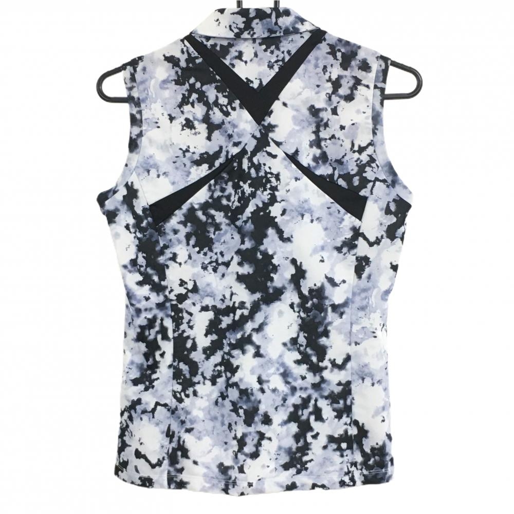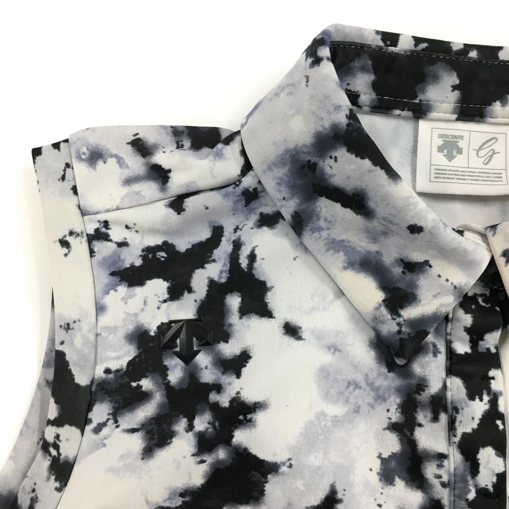 デサントゴルフ ノースリーブポロシャツ グレー系×黒系 総柄 韓国モデル スナップボタン 中田英寿 レディース M ゴルフウェア DESCENTE