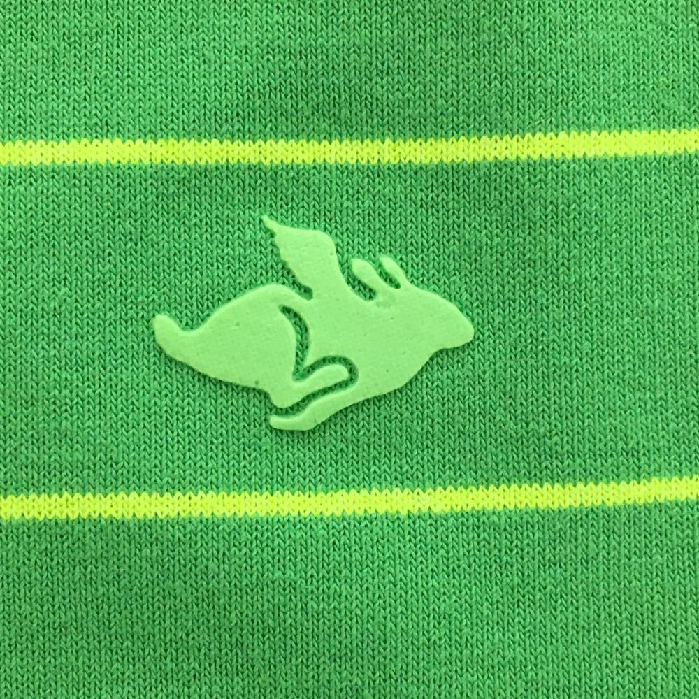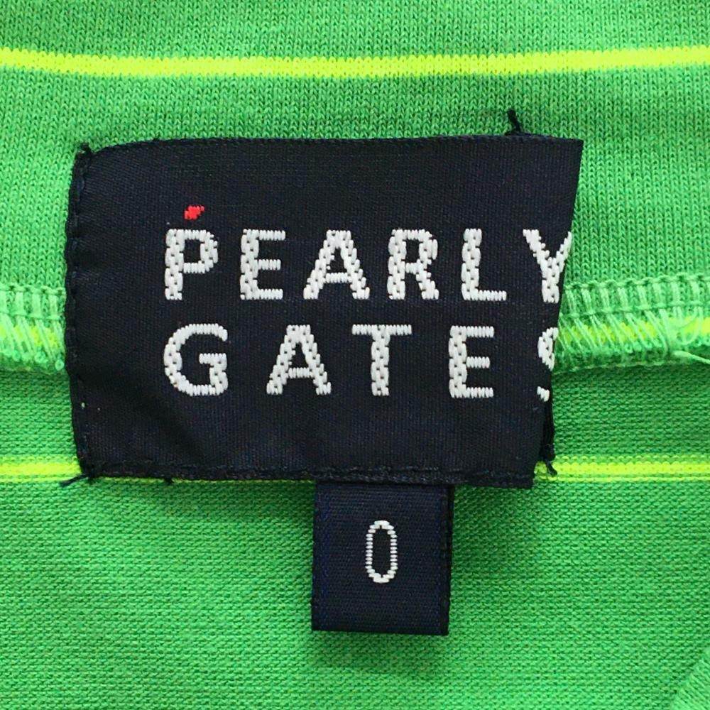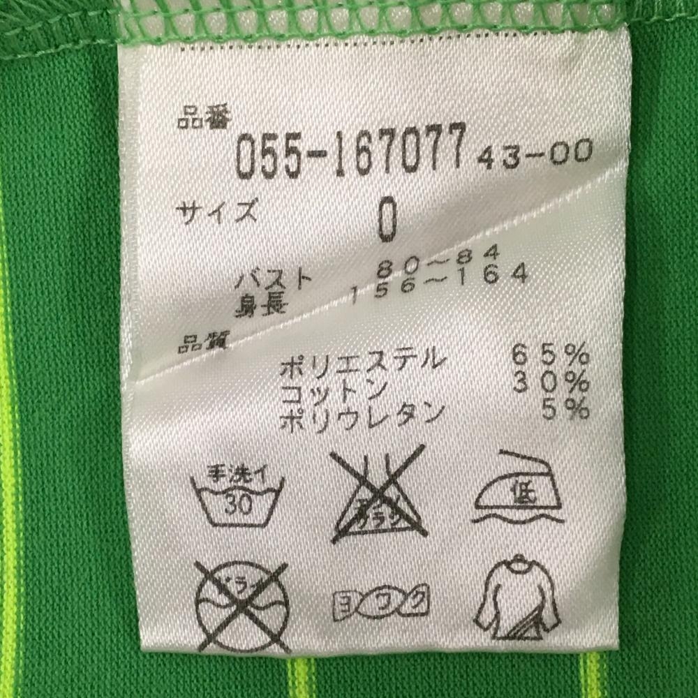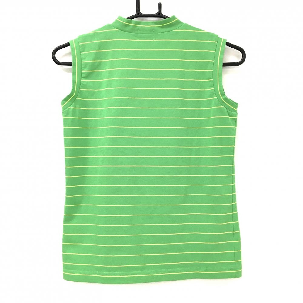 【超美品】パーリーゲイツ ノースリーブハイネックシャツ グリーン×イエロー 細ボーダー レディース 0(S) ゴルフウェア PEARLY GATES