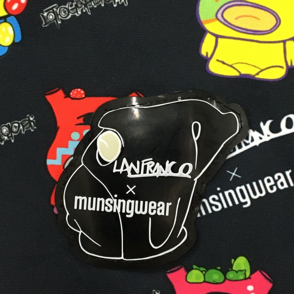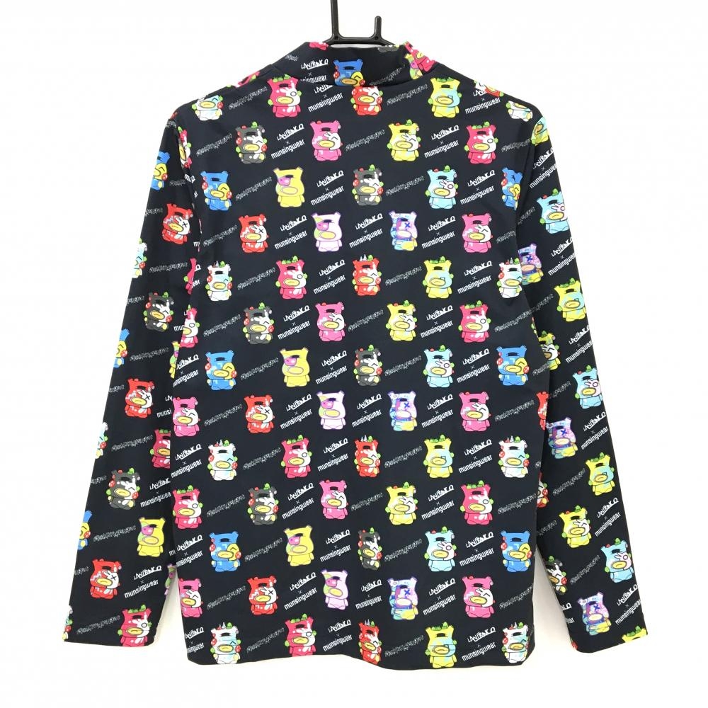 【超美品】マンシングウェア×ラファエル・ランフランコ 長袖ハイネックシャツ 黒×マルチカラー 総柄 メンズ M ゴルフウェア Munsingwear