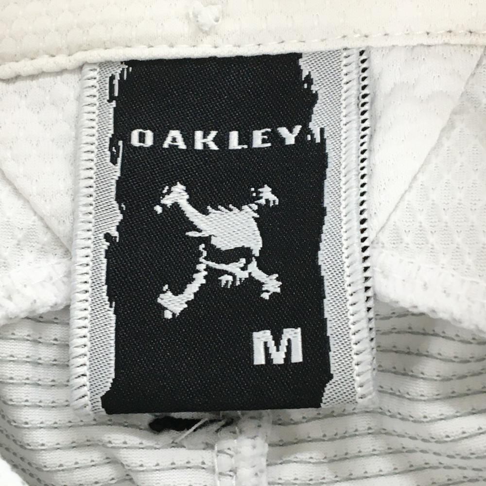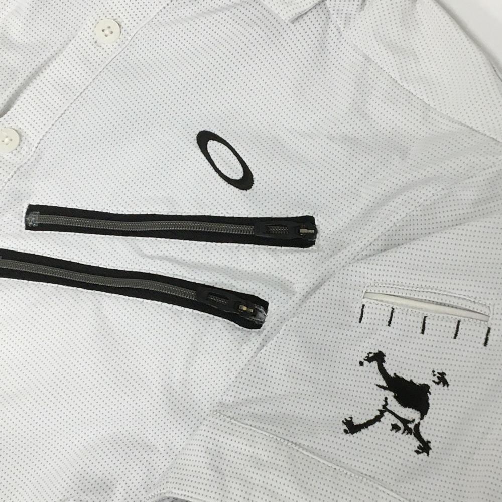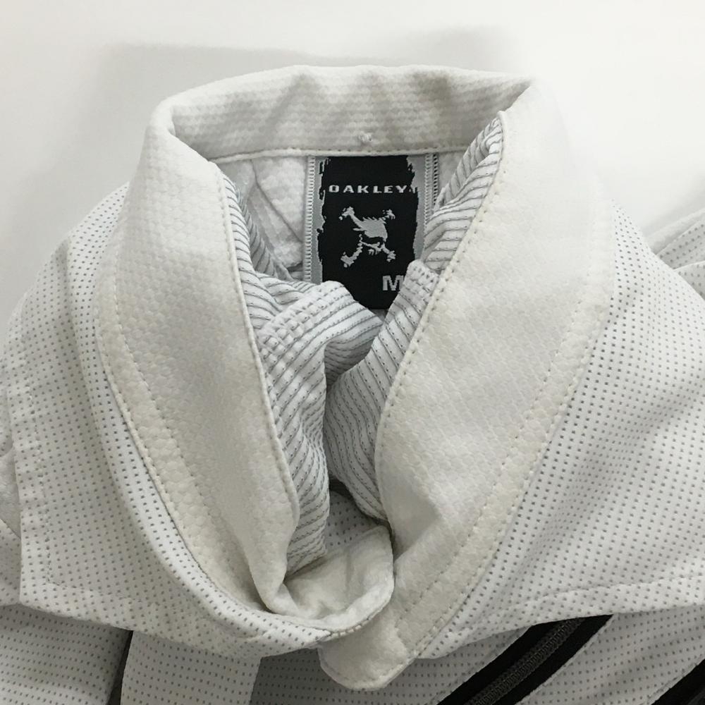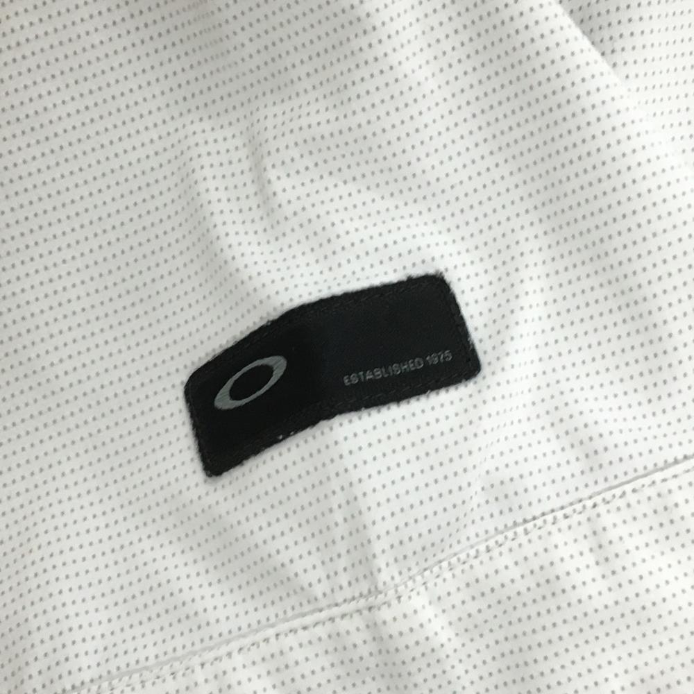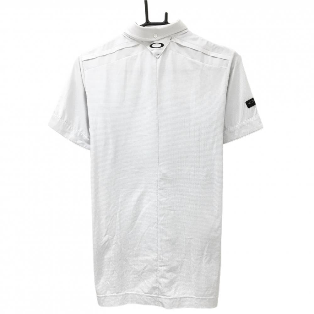 オークリー 半袖ポロシャツ 白×グレー 地模様 胸ポケット ティー装着可 メンズ M ゴルフウェア Oakley