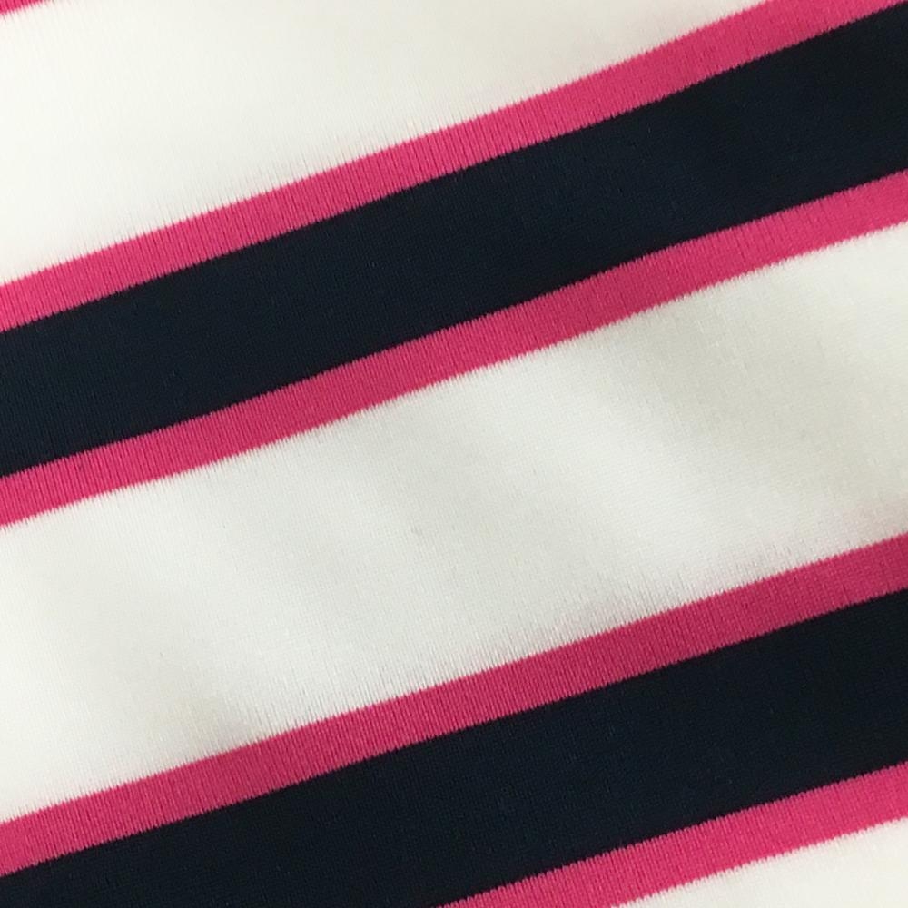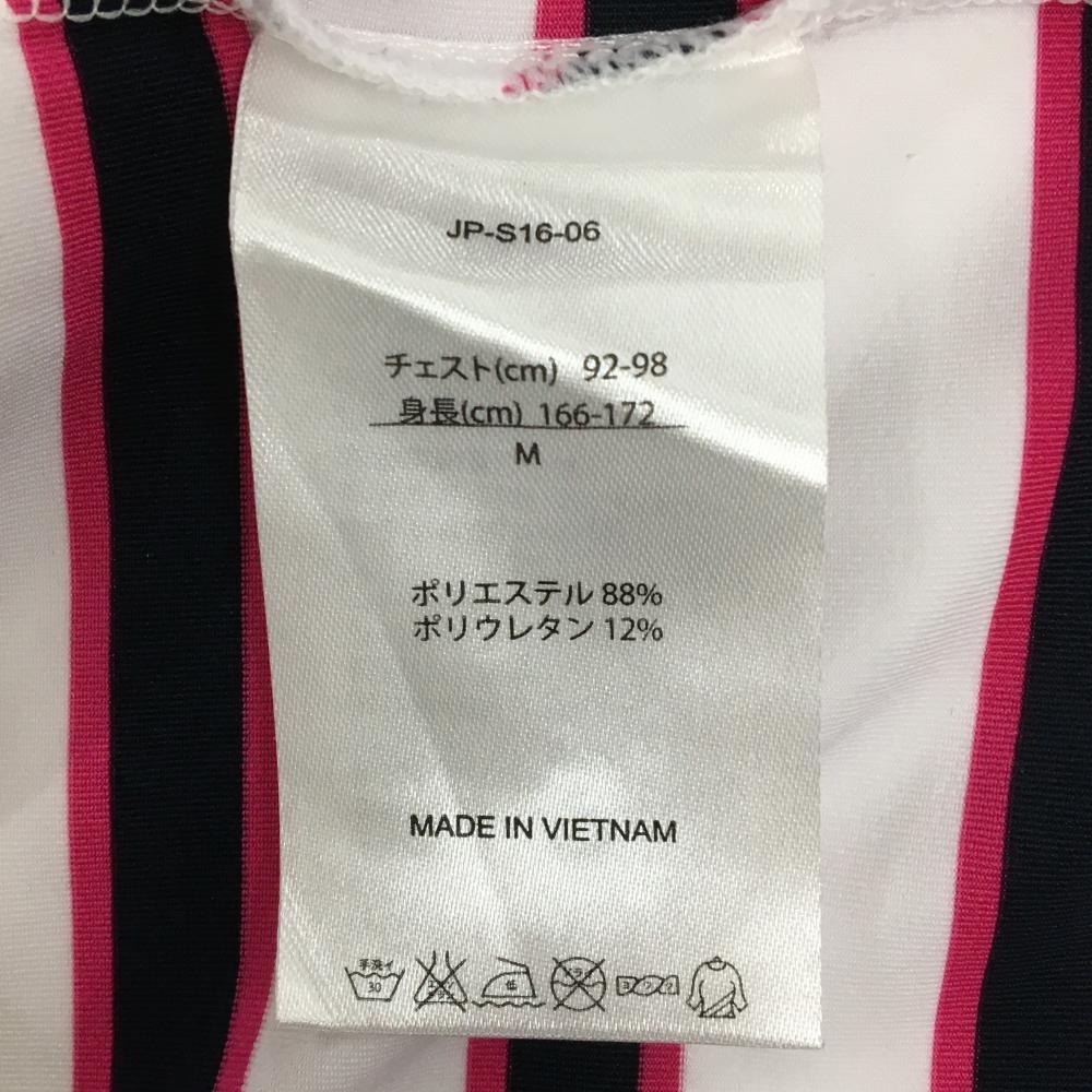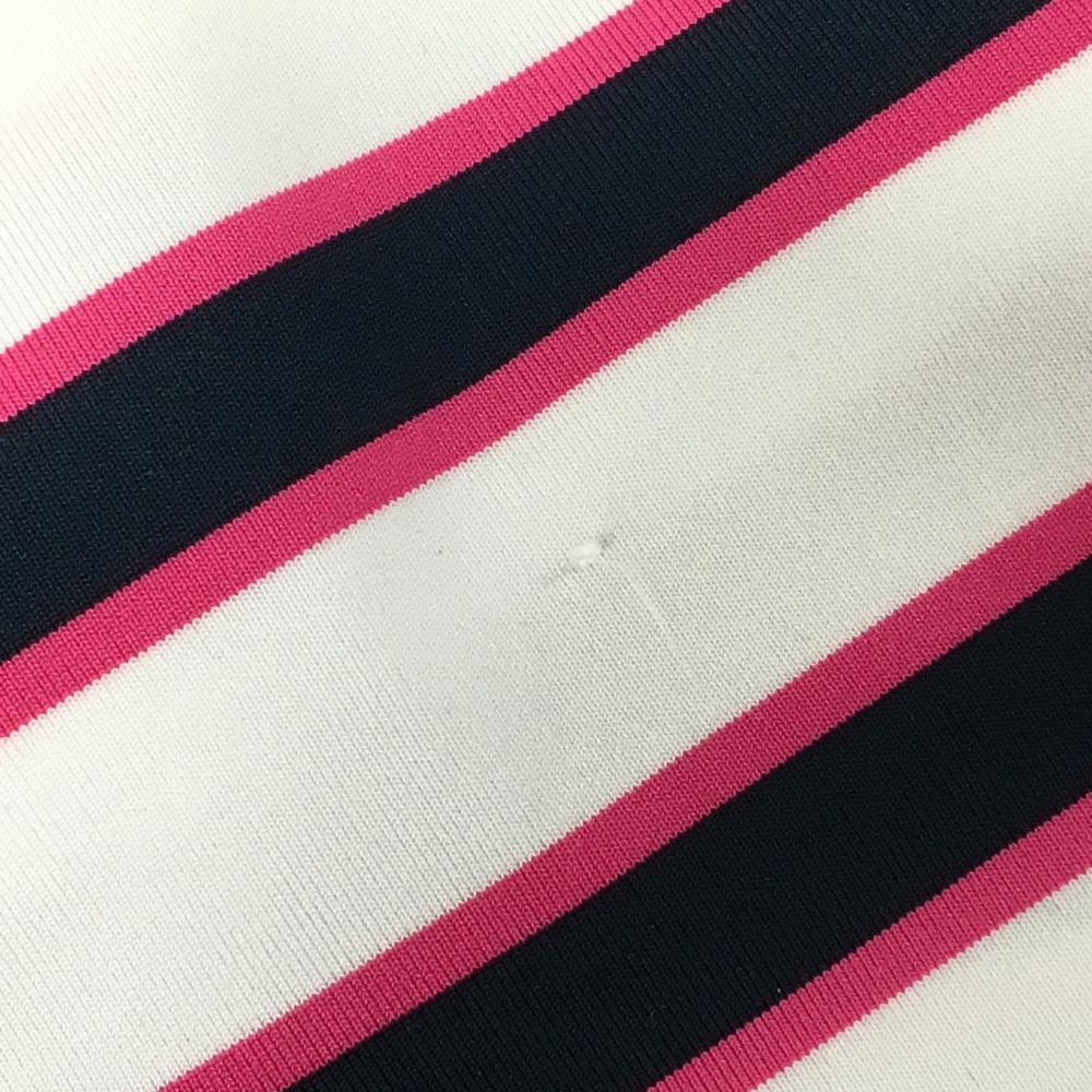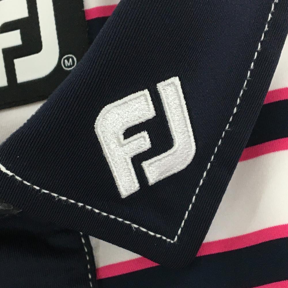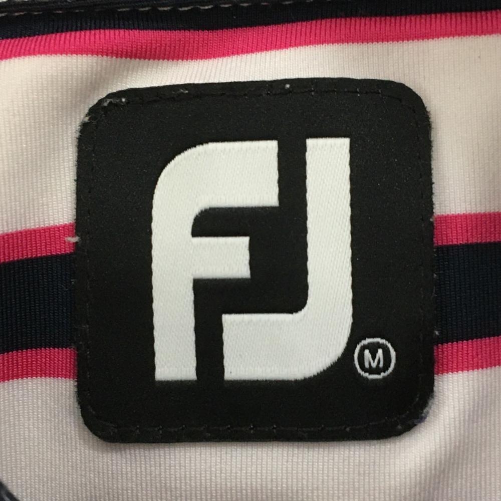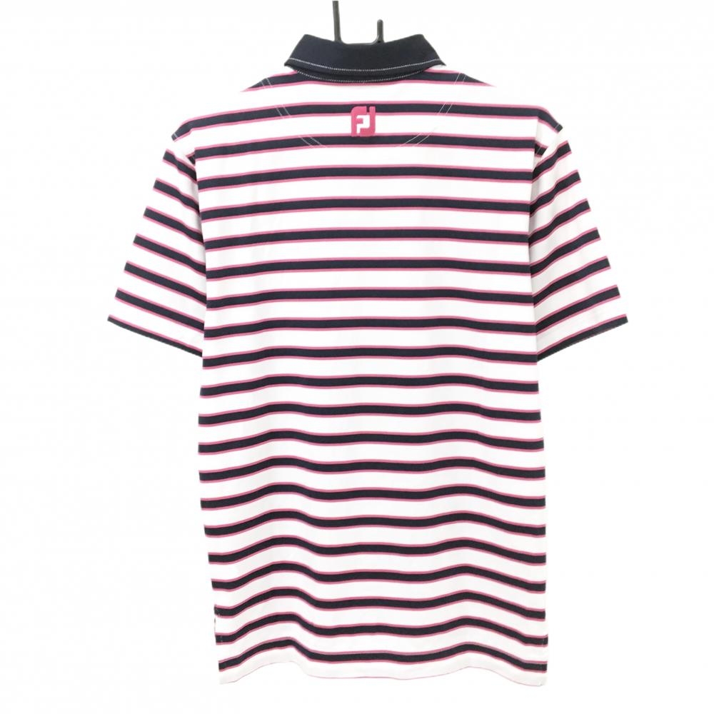 【美品】フットジョイ 半袖ポロシャツ 白×ネイビー ボーダー 襟ロゴ刺しゅう メンズ M ゴルフウェア FootJoy
