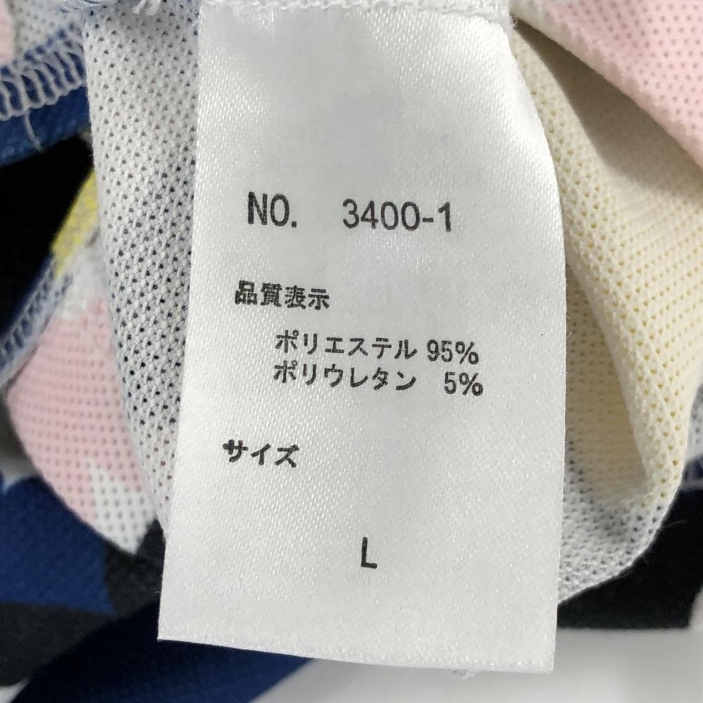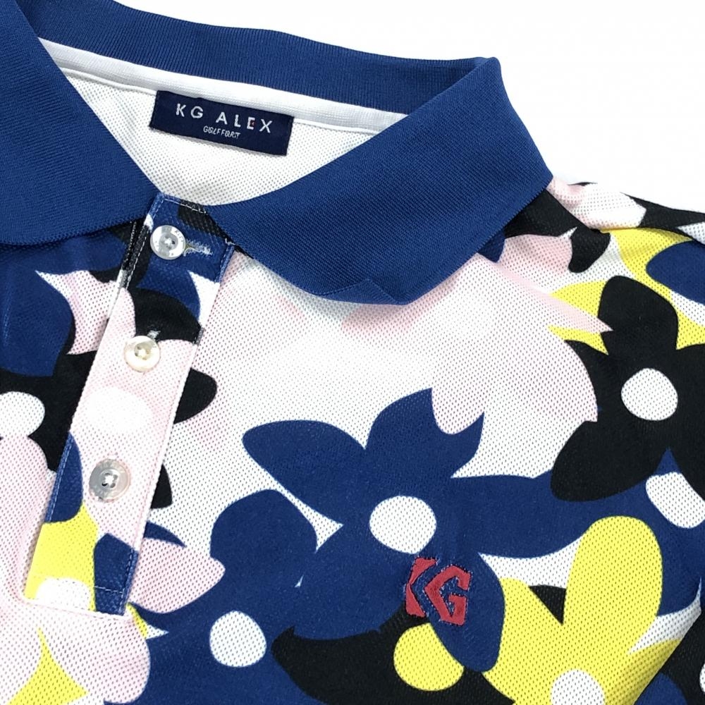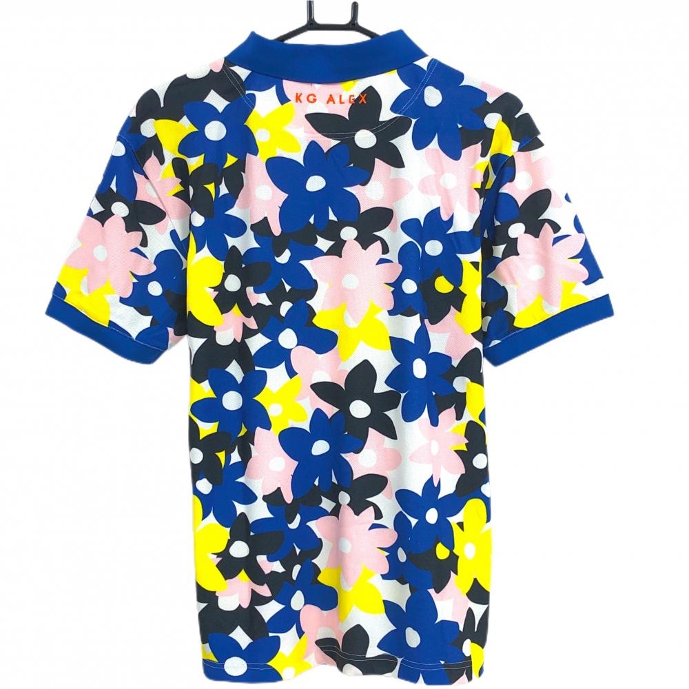 【美品】ケージーアレックス 半袖ポロシャツ ブルー×ピンク×イエロー 花柄 キスオンザグリーン メンズ L ゴルフウェア kiss on the green
