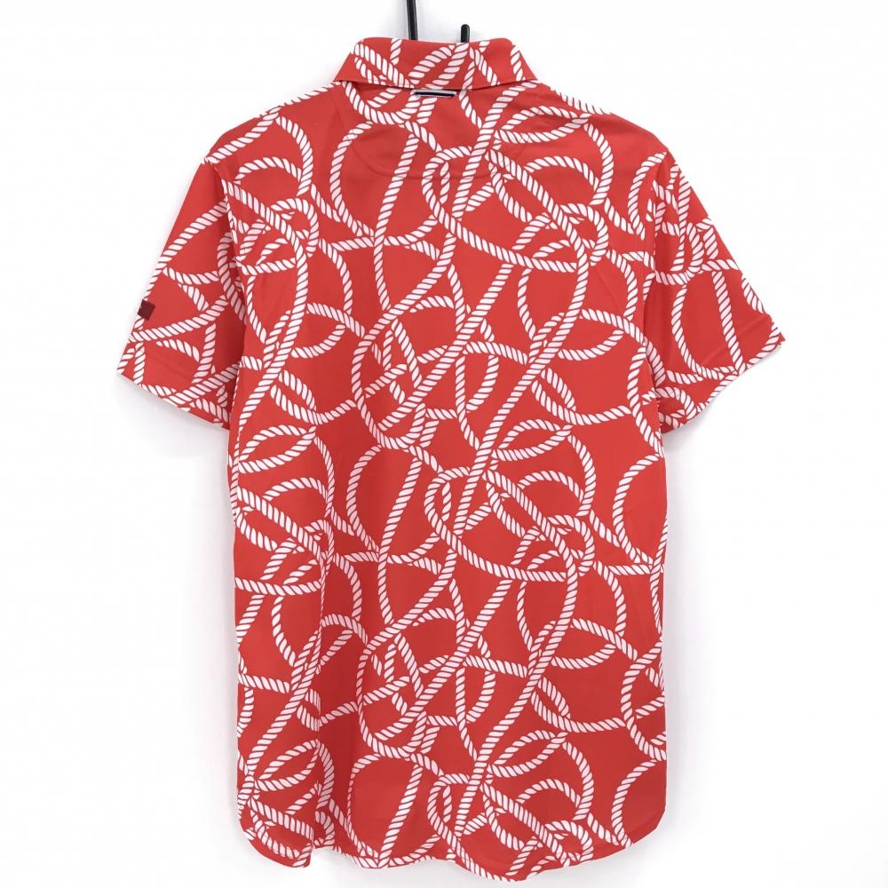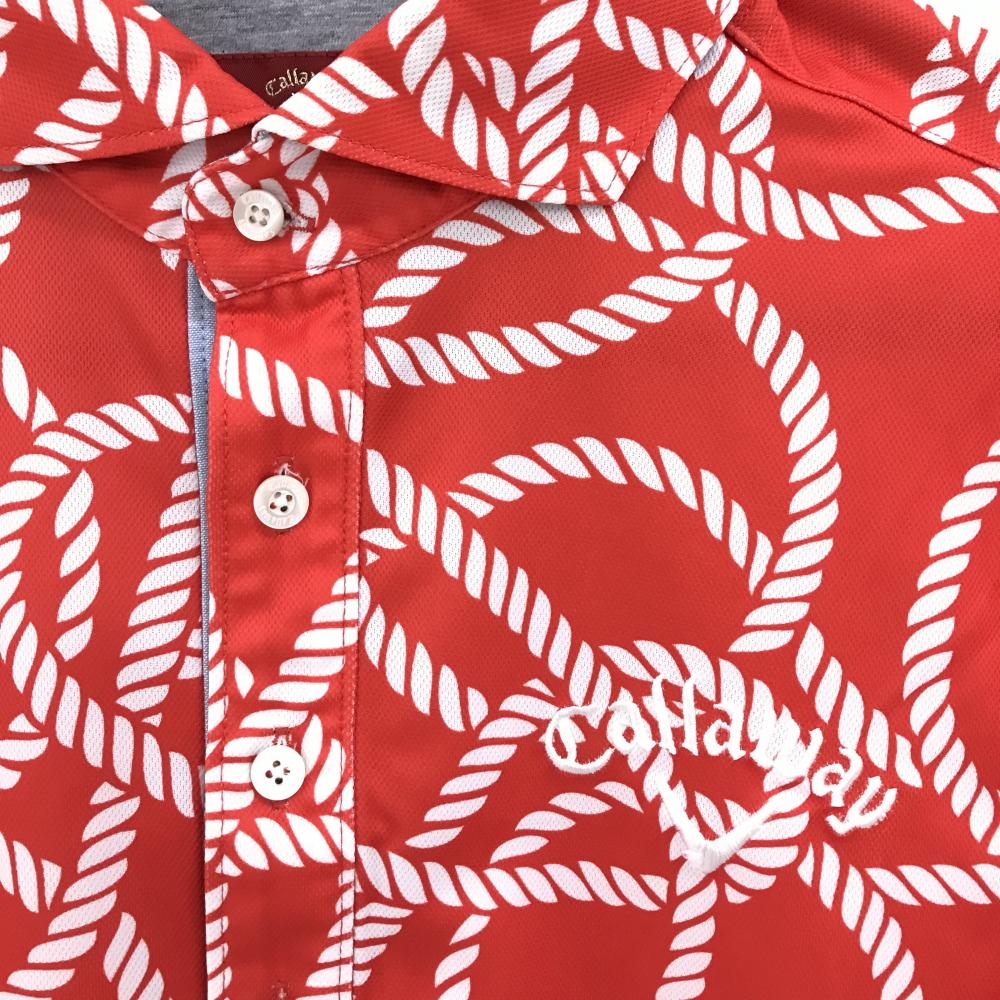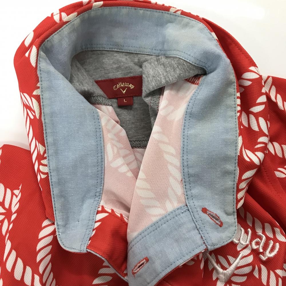 【美品】キャロウェイ レッドレーベル 半袖ポロシャツ レッド×白 総柄 メンズ L ゴルフウェア Callaway